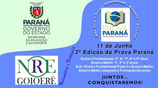 10:00 Trabalho de mobilização para a 2ª Edição da Prova Paraná O Núcleo Regional de Educação de Goioerê vem desenvolvendo um intenso trabalho de mobilização e apoio à participação de todos os alunos da rede pública de ensino na 2ª Edição da Prova Paraná
