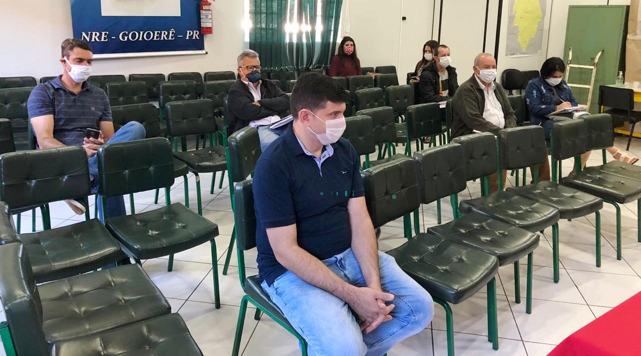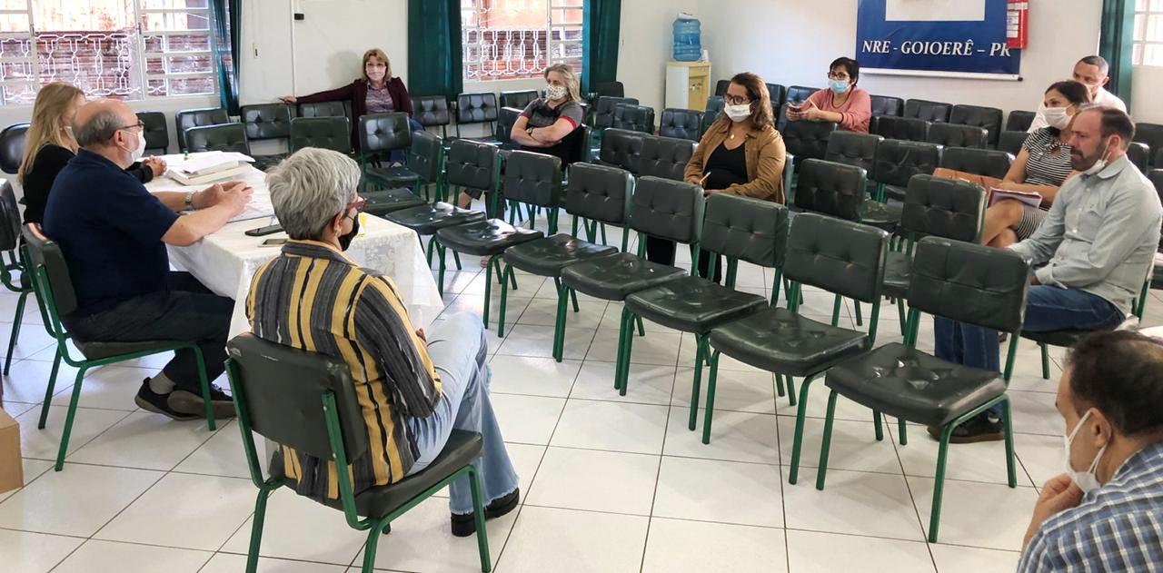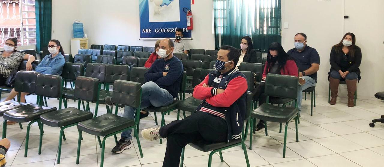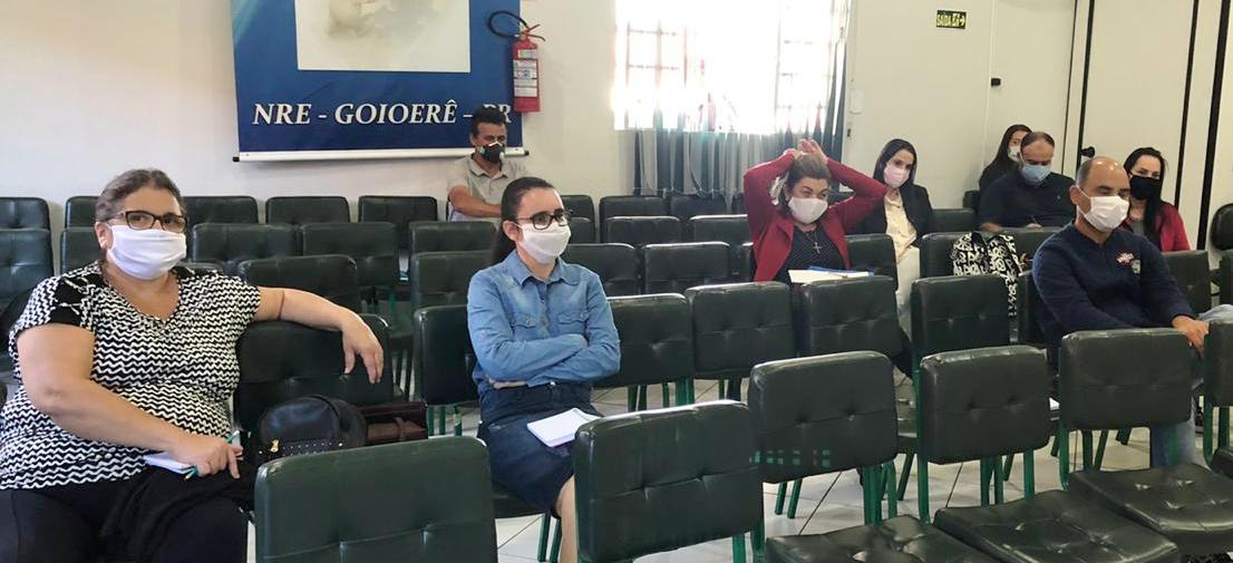 Nesta semana, a Chefia e a Equipe do NRE de Goioerê estiveram em reunião com os diretores dos 31 estabelecimentos de ensino estadual, para atender a todos com segurança e qualidade, eles foram divididos em 5 grupos com dias e horários diferentes. Vários foram os assuntos tratados entre eles, a Resolução 1.016/2020 – GS/SEED PR; LRCO; a importância de todos os Professores, Pedagogos em estudarem e conhecerem o Classroom; os diversos meios de assistir às aulas em EaD e o valor da disponibilização da escola em atender os alunos, pais e a comunidade escolar, neste período difícil.