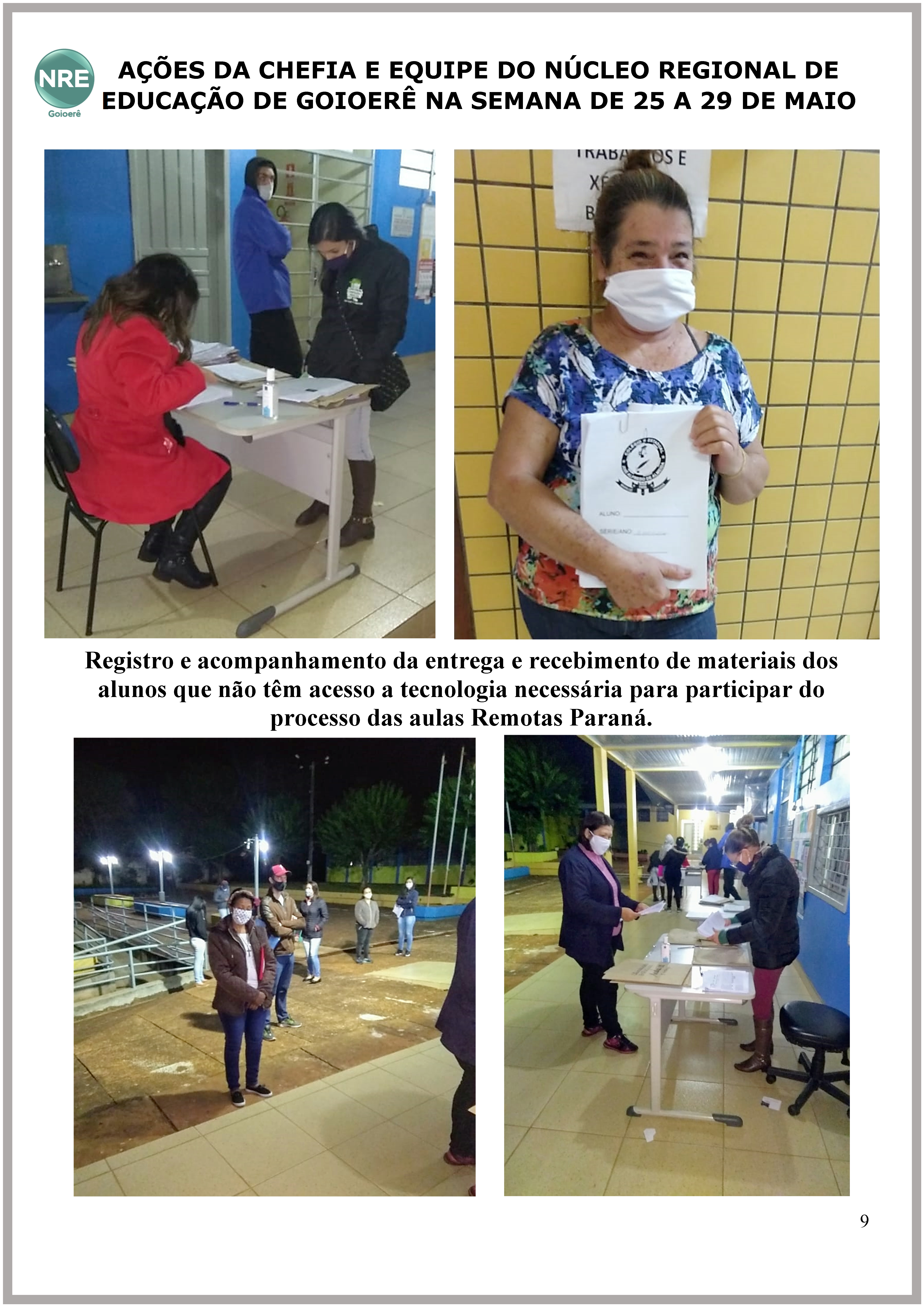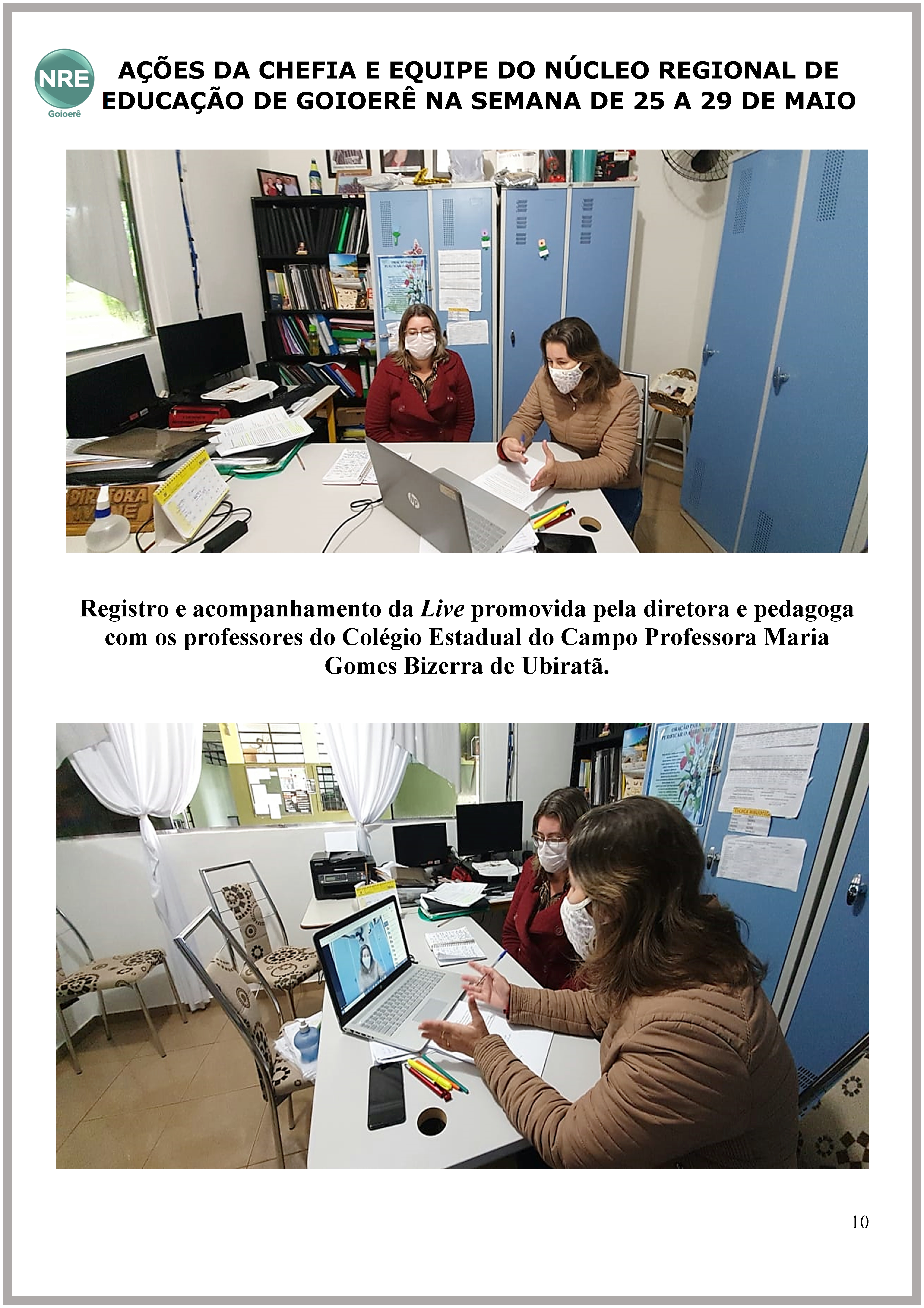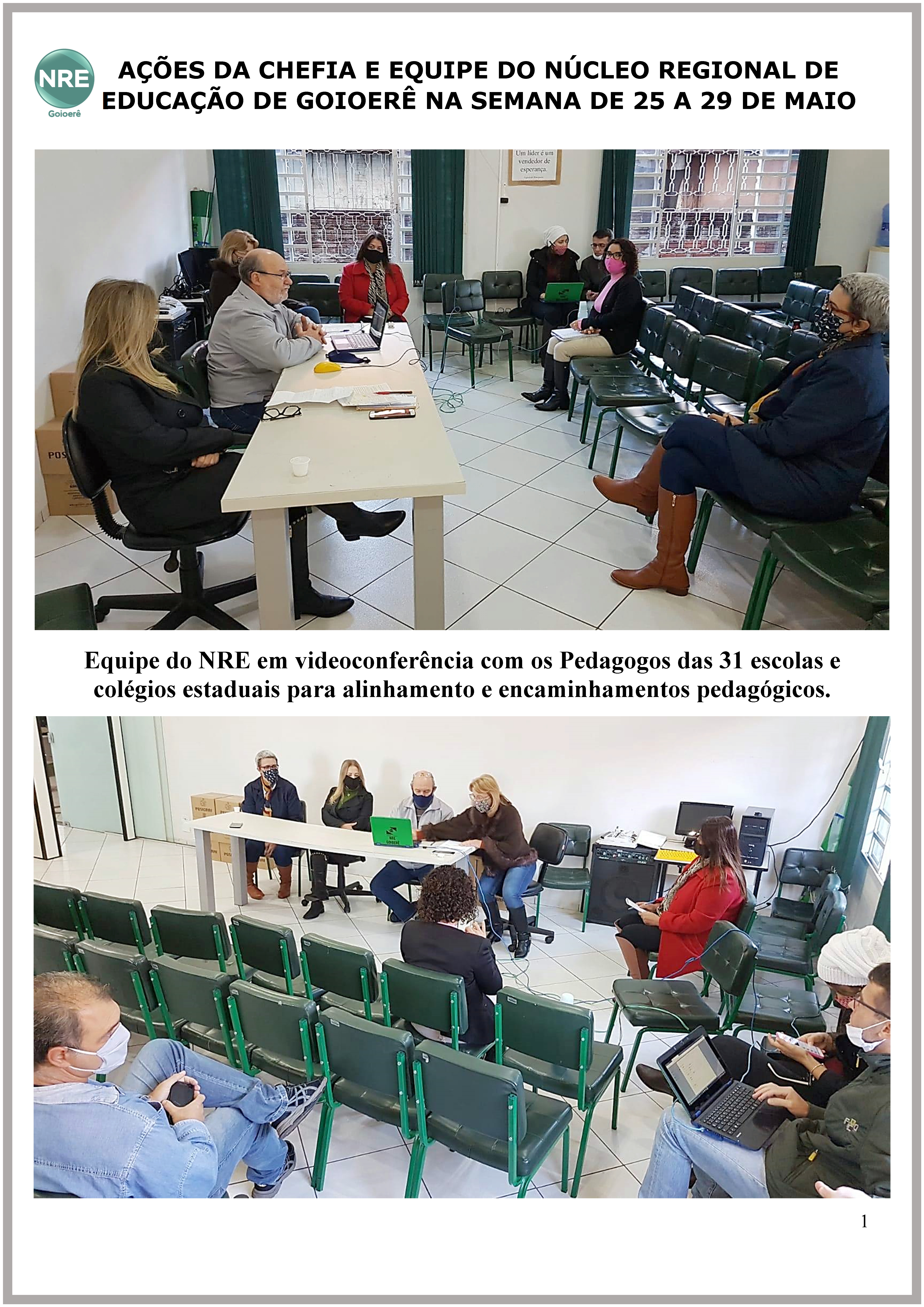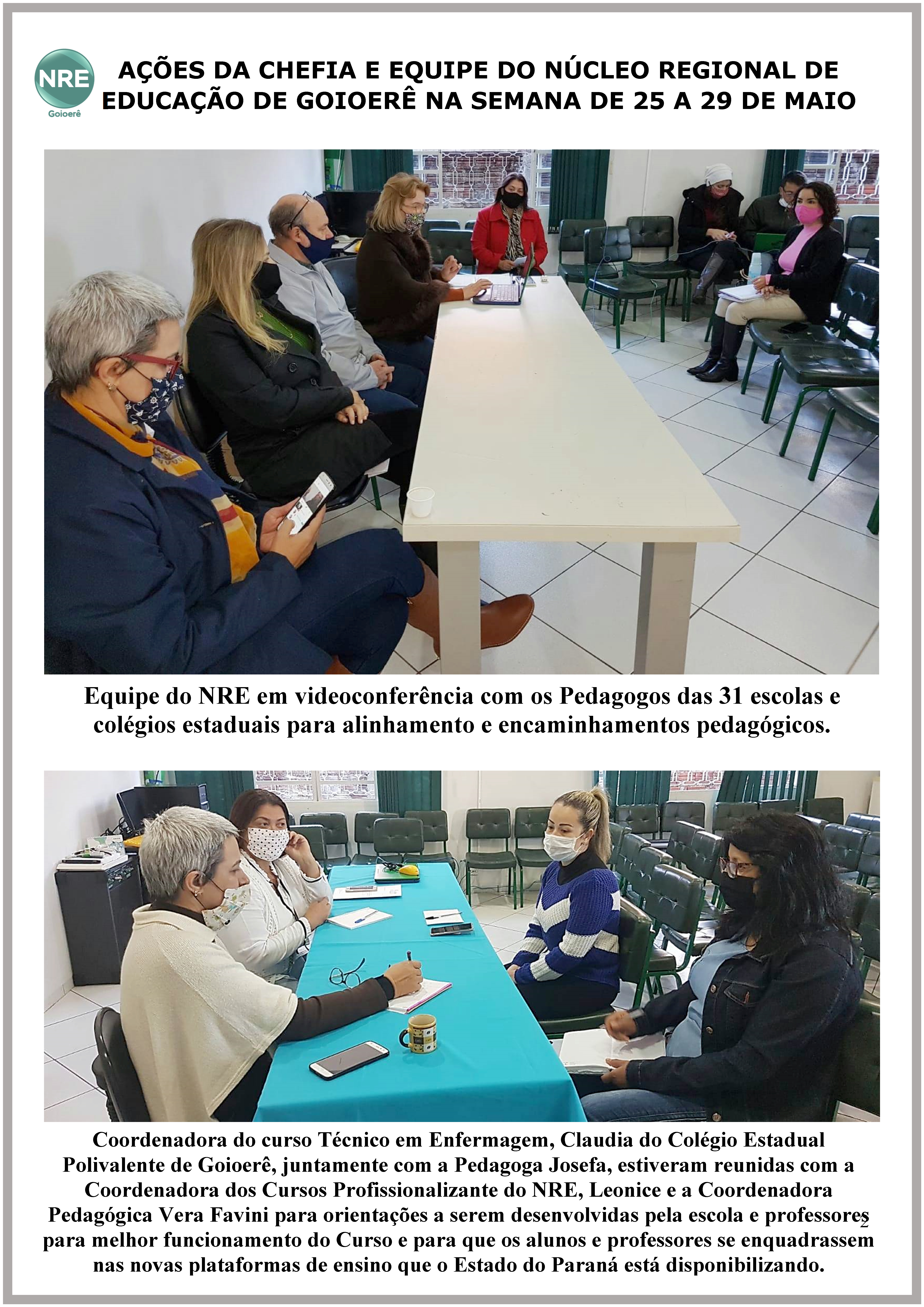 AÇÕES DA CHEFIA E EQUIPE DO NÚCLEO REGIONAL DE EDUCAÇÃO DE GOIOERÊ NA SEMANA DE 25 A 29 DE MAIO 31/05/2020 - 19:50
