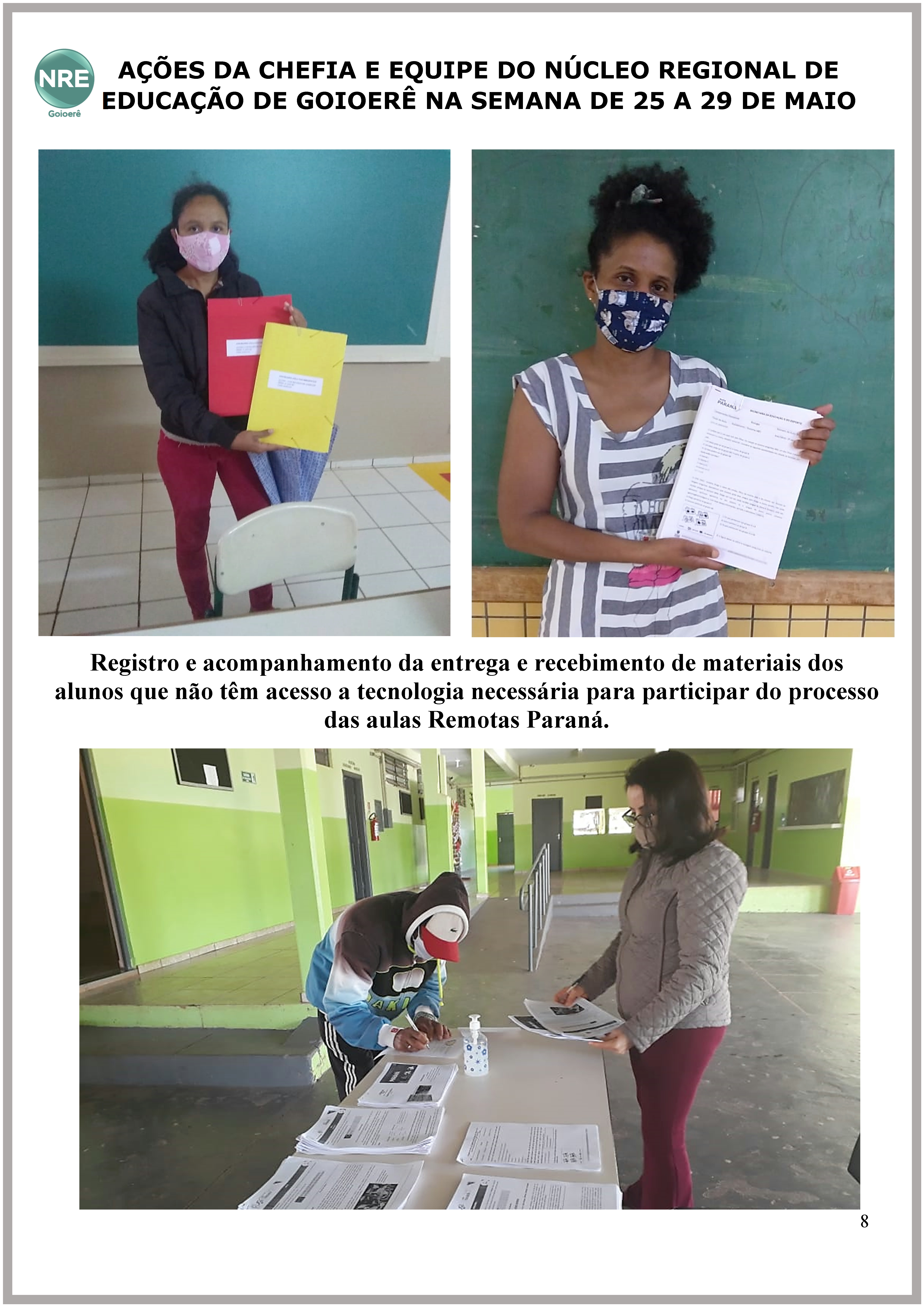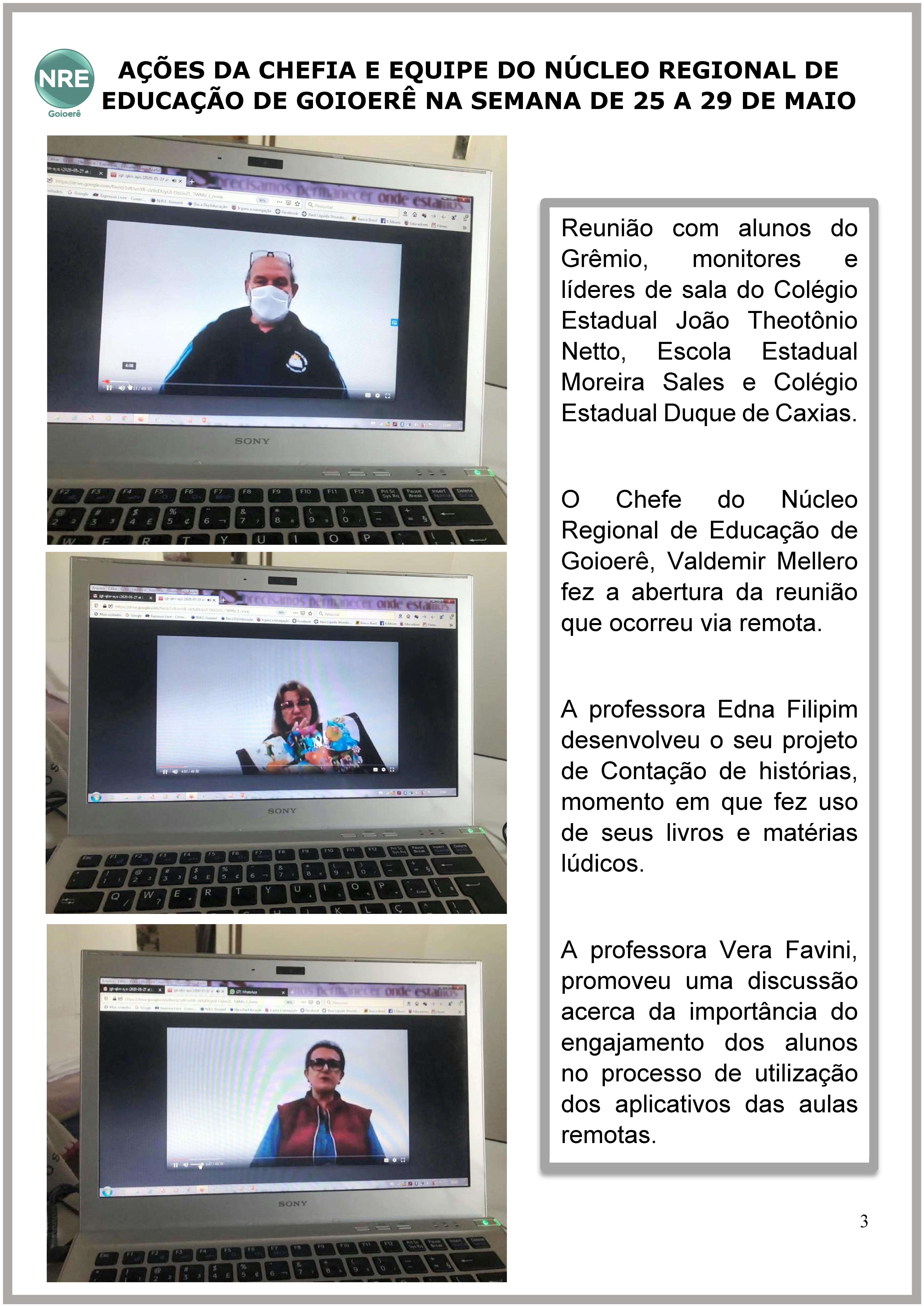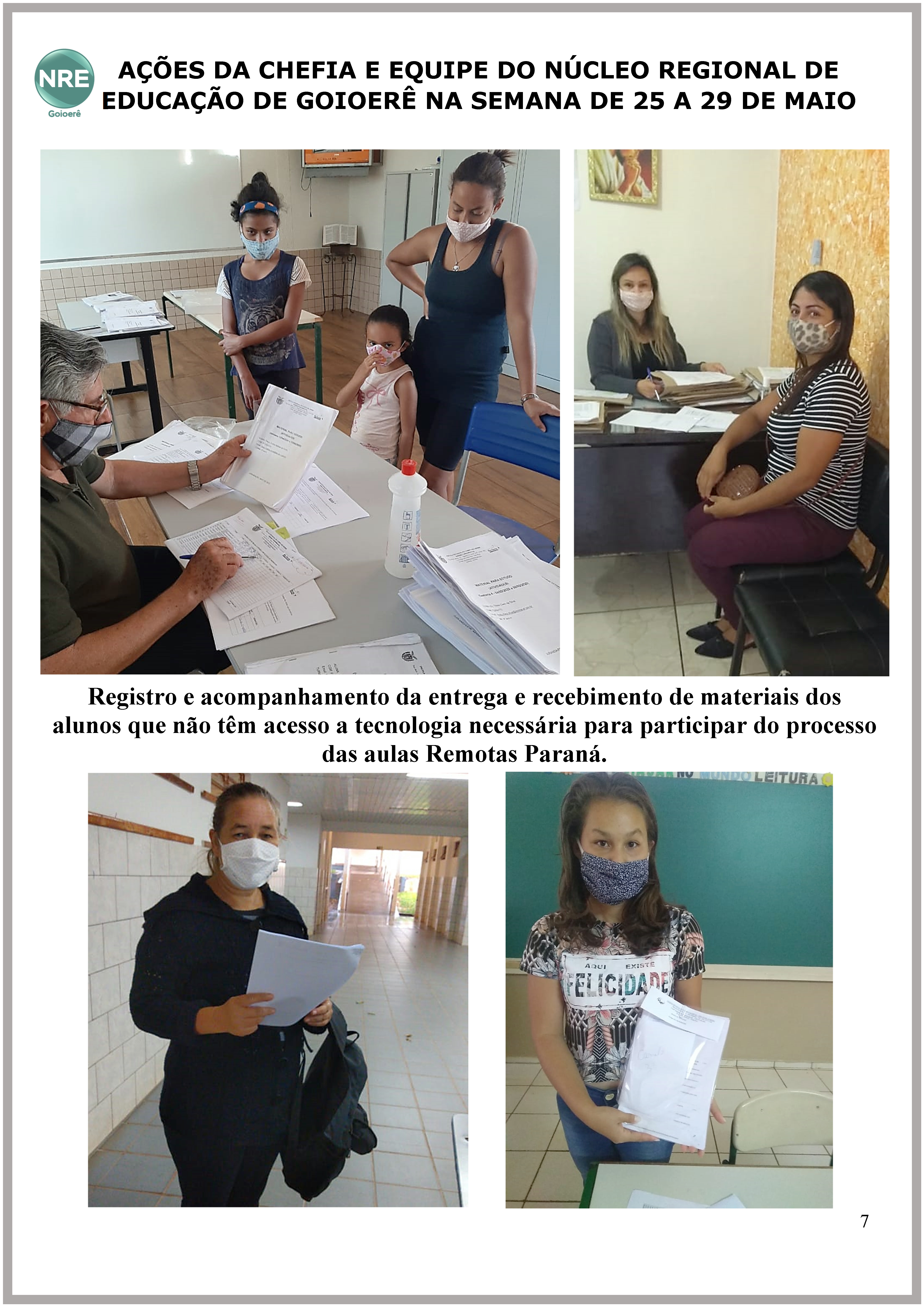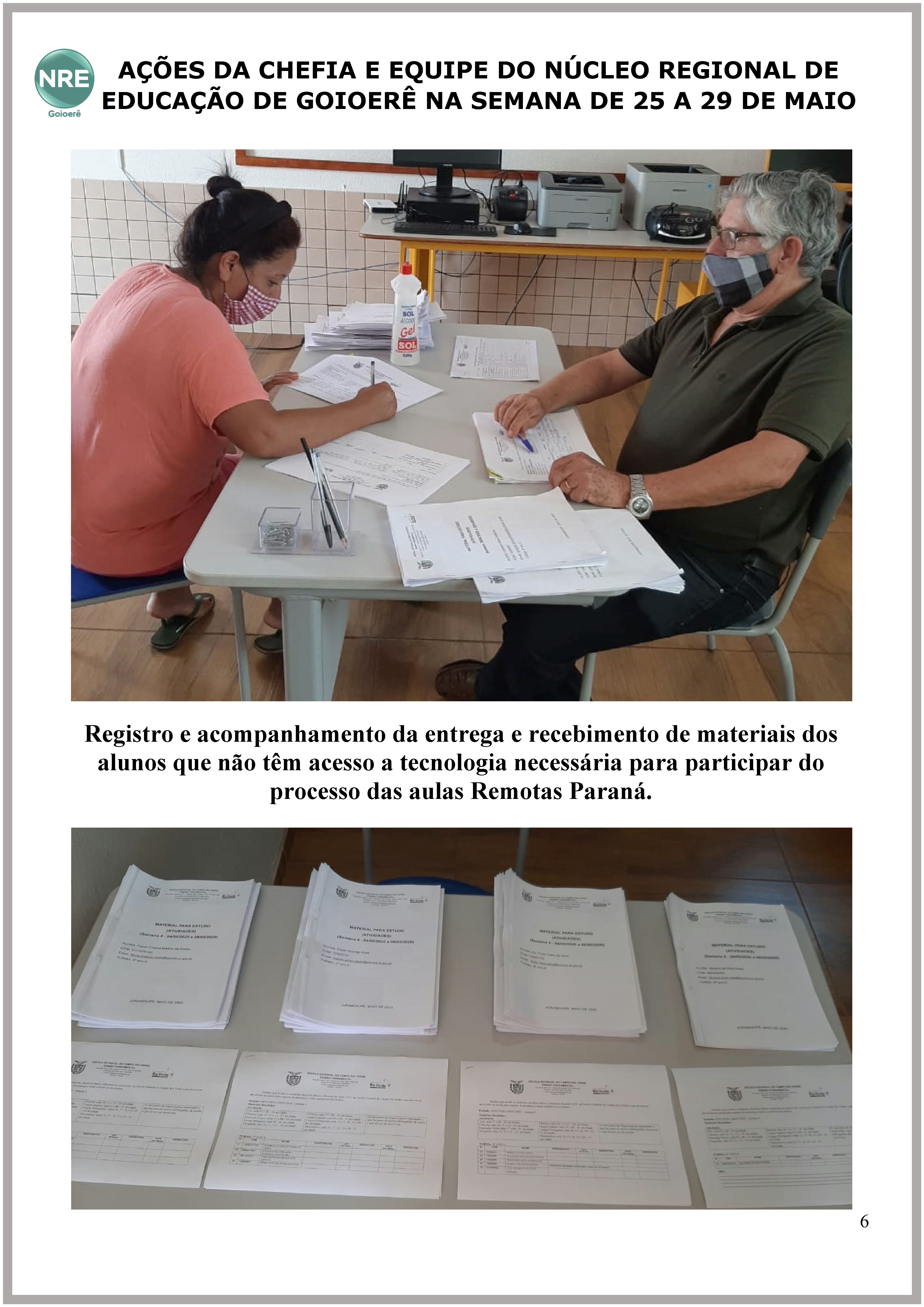 AÇÕES DA CHEFIA E EQUIPE DO NÚCLEO REGIONAL DE EDUCAÇÃO DE GOIOERÊ NA SEMANA DE 25 A 29 DE MAIO 31/05/2020 - 19:50