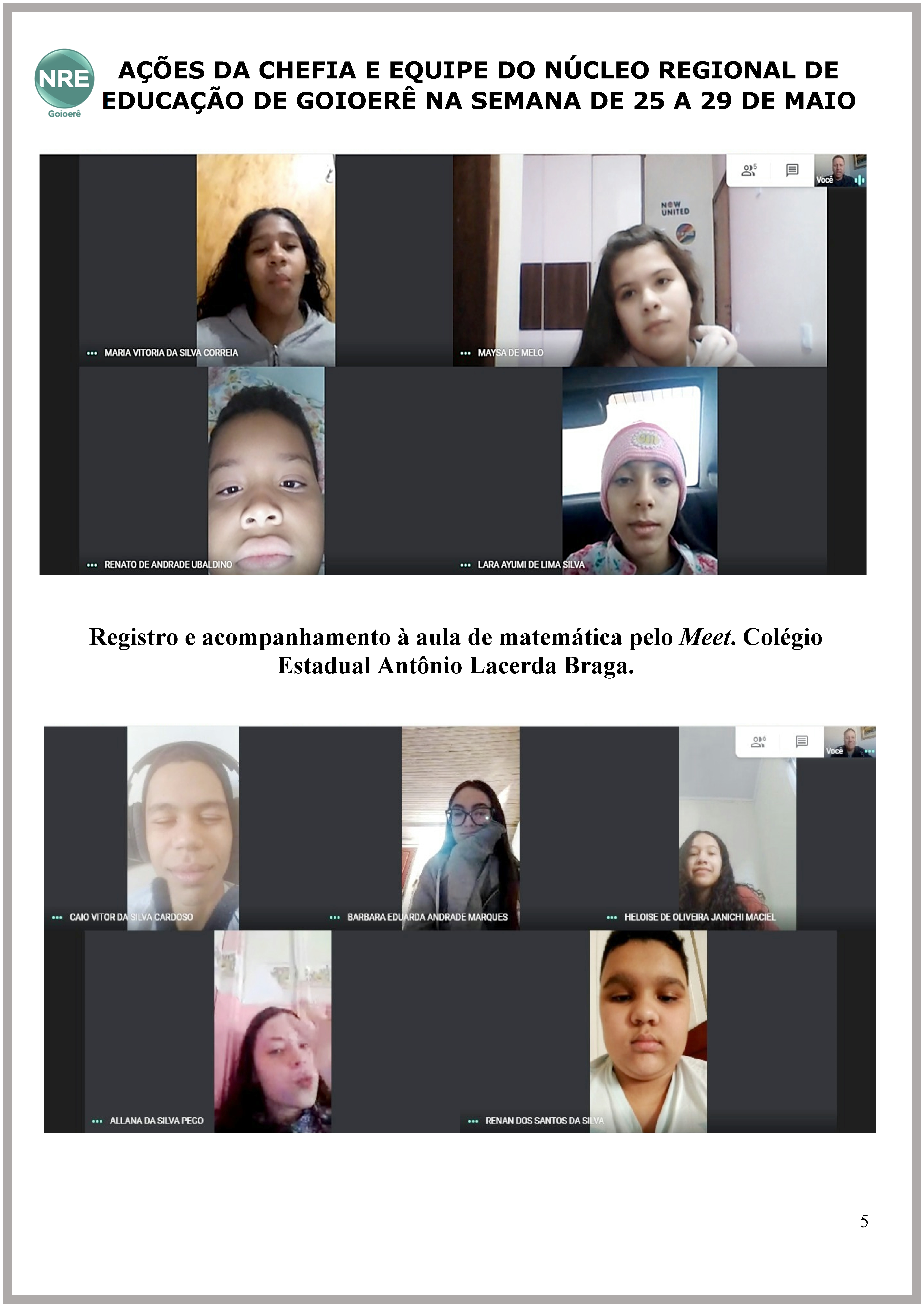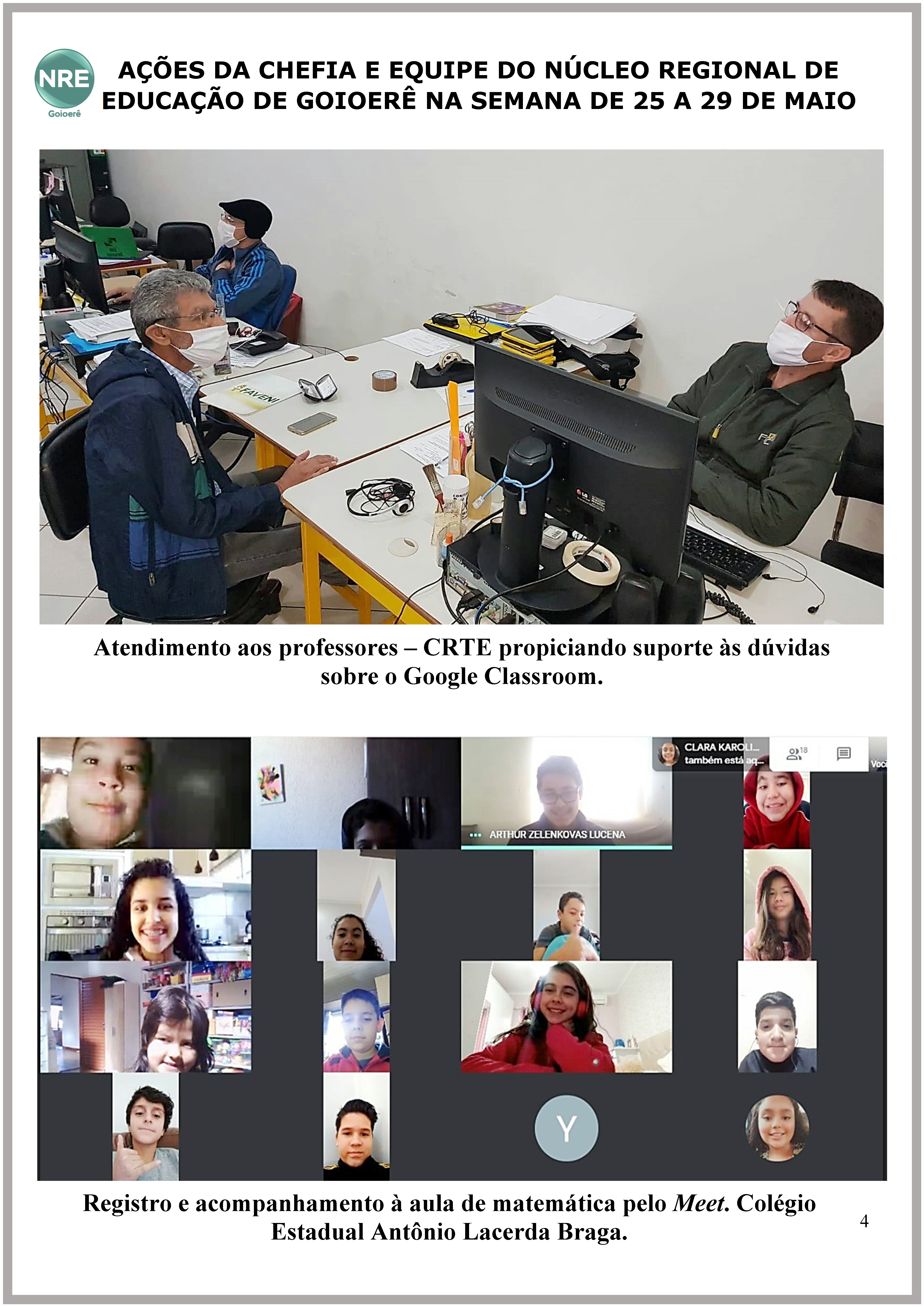 O Núcleo Regional de Educação de Goioerê, na semana de 25 a 29 de maio, teve, mais uma vez, a satisfação do cumprimento do dever para com os alunos, professores, diretores, pedagogos e comunidade escolar no que tange ao assessoramento às aulas remotas.