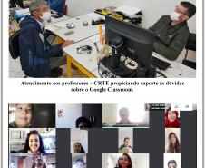 Na referida semana foi promovido uma videoconferência com os Pedagogos das 31 escolas e colégios estaduais para alinhamento e encaminhamentos pedagógicos, uma reunião com os representantes do curso técnico em Enfermagem do Colégio Estadual Polivalente de Goioerê, para orientações a serem desenvolvidas pela escola e professores na melhoria do funcionamento do Curso e para que os alunos e professores se enquadrassem nas novas plataformas de ensino que o Estado do Paraná está disponibilizando, uma reunião via remota com alunos do Grêmio, monitores e líderes de sala do Colégio Estadual João Theotônio Netto, Escola Estadual Moreira Sales e Colégio Estadual Duque de Caxias, houve atendimento aos professores, pela equipe do CRTE que proporcionou suporte às dúvidas sobre o Google Classroom e outros.