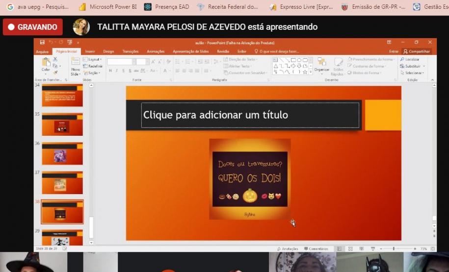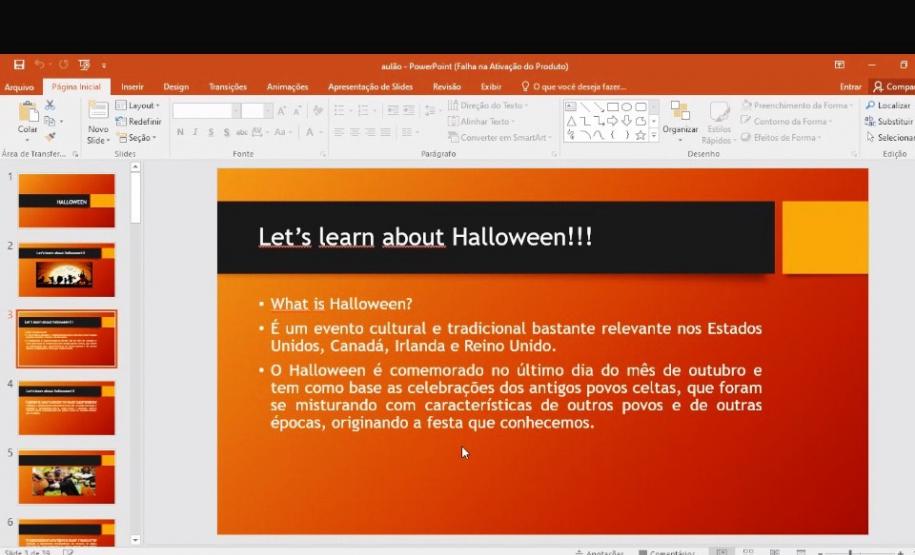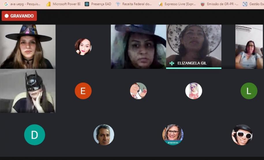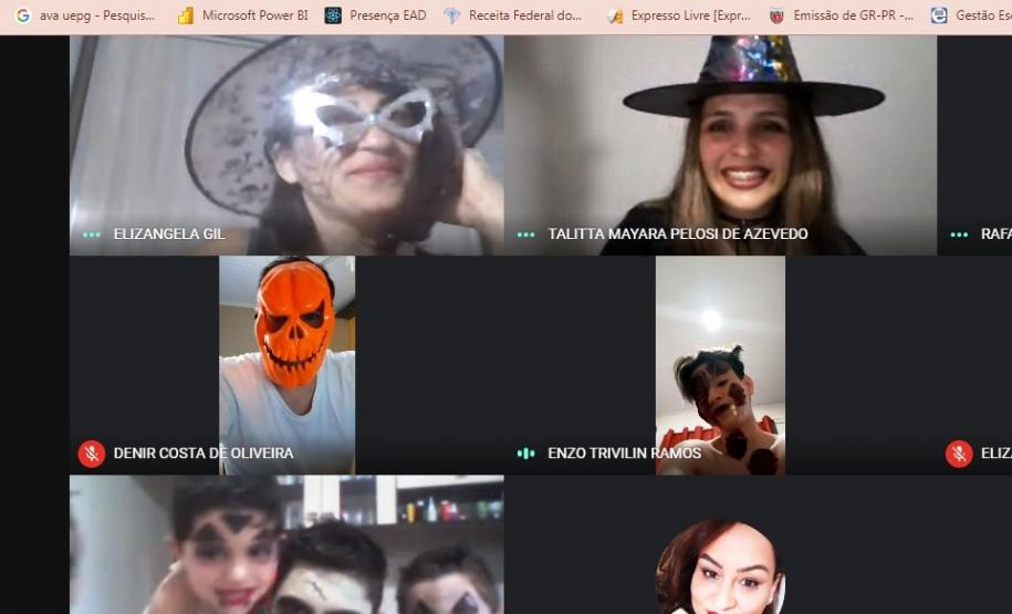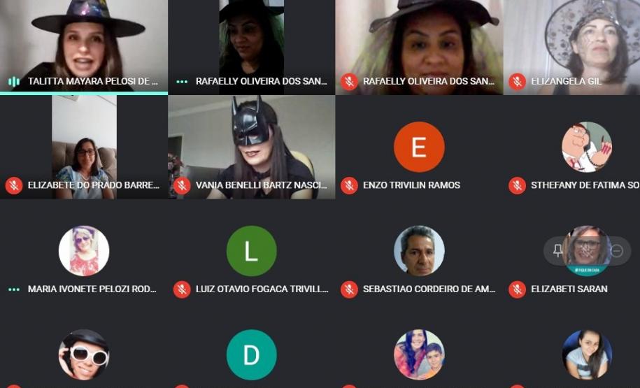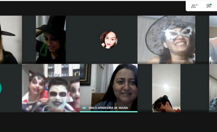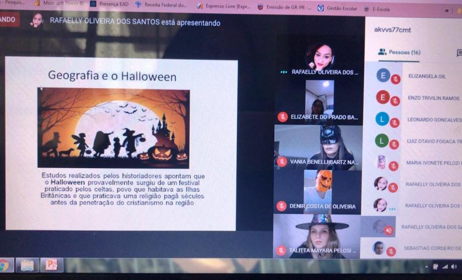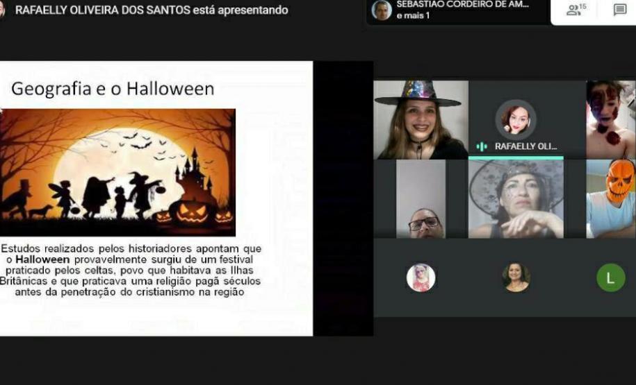 Por iniciativa das professoras Rafaelly Oliveira Santos, Talitta Pelosi Schwab e Elizângela Gil, a escola promoveu no dia 29 de outubro um “Aulão Assustador de Geografia, Inglês e Arte”, via Google Meet, envolvendo professores, alunos e pais.