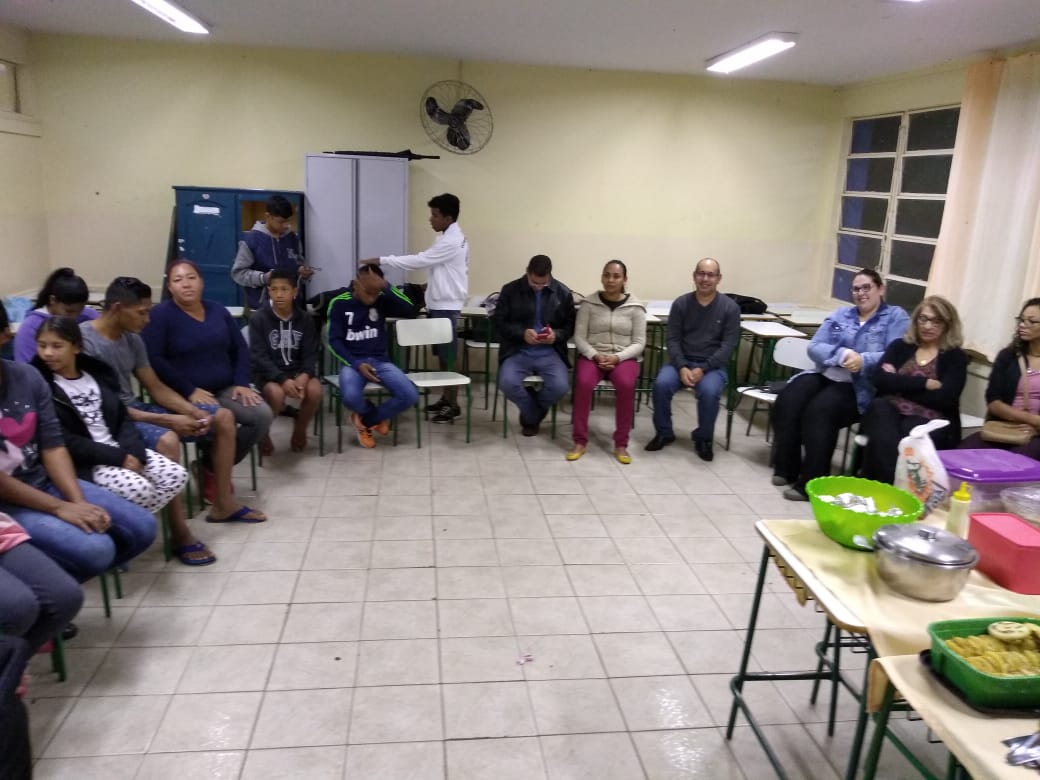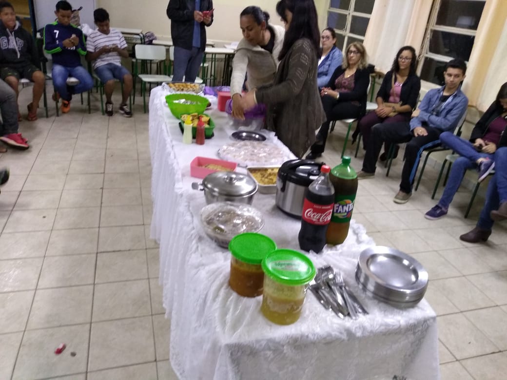 Na noite do último dia 23/05, ocorreu no C.E. Duque de Caxias um intercambio culinário com o envolvimento das turmas do CELEM – Língua Espanhola e Língua Portuguesa. Os estudantes de Língua Espanhola orientados pela professora Rosangela e os de Língua Portuguesa para falantes de outras línguas, orientados pela professora Miria, reuniram-se para uma aula prática sobre os pratos típicos dos brasileiros e dos venezuelanos.