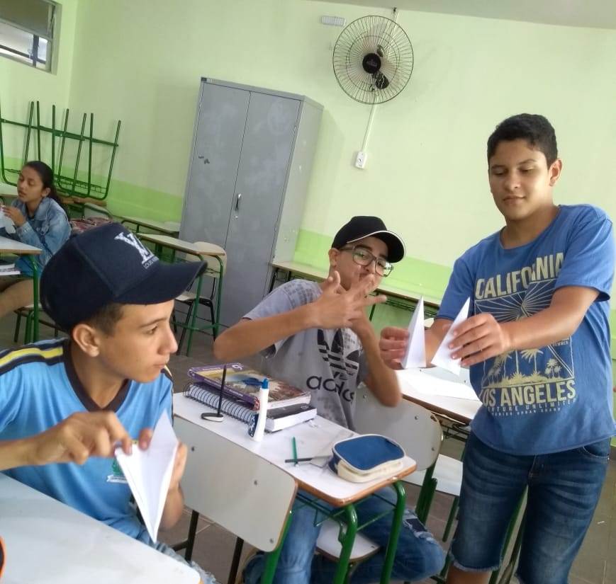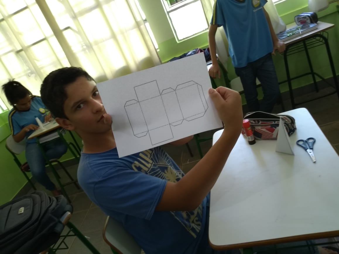 No Colégio Estadual do Campo Maria Cândida de Jesus, Distrito de Paraná D’ Oeste, Município de Moreira Sales, o professor Everaldo Martins de Souza da disciplina de Matemática, da turma do 9° ano do Ensino Fundamental, turno da manhã, após análise dos Descritores da Prova Paraná, retomou o conteúdo "Geometria", diversificando a metodologia. Através da planificação confeccionou com os alunos os Sólidos Geométricos, para que os mesmos adquiram com maior propriedade conhecimentos sobre: área, perímetro, vértices, faces, arestas e volume das figuras objetivando trabalhar os Descritores 02; 13 e 14.