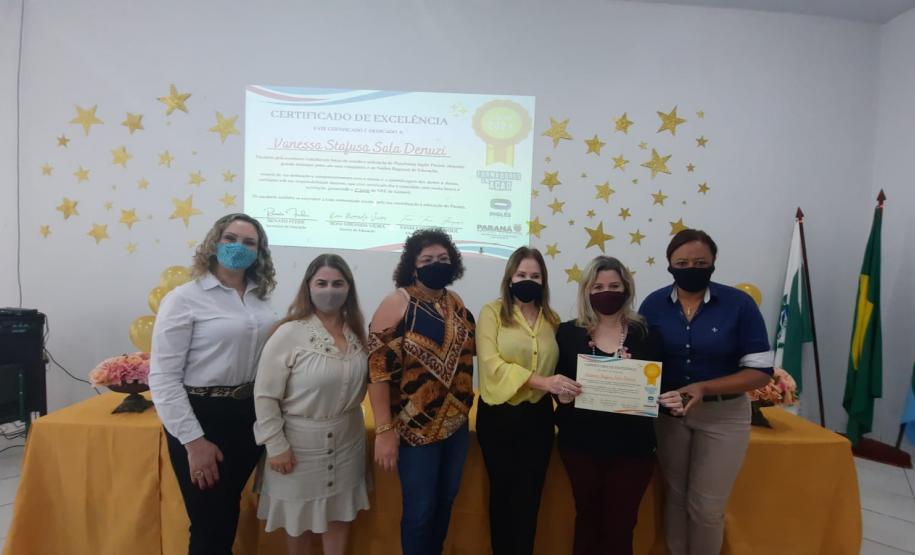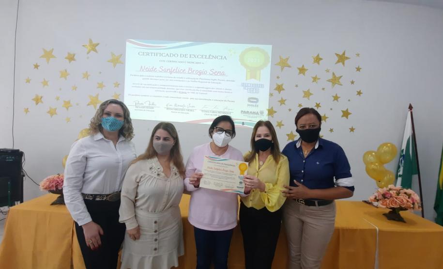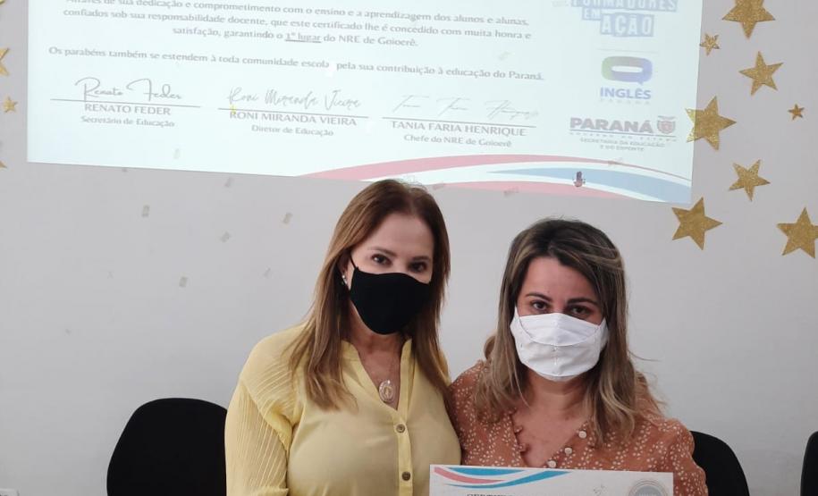 A chefe do NRE de Goioerê, professora Tania Faria Henrique, parabeniza a todas as professoras premiadas pelo empenho e dedicação.