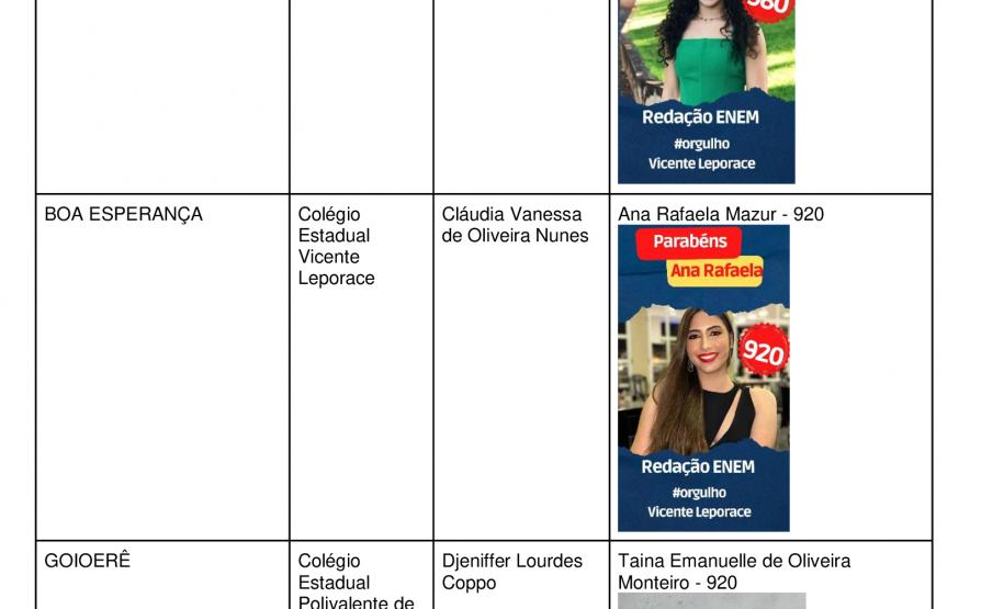 Assim, o NRE de Goioerê divulga e parabeniza o resultado tanto da Valéria quanto dos demais jovens que estudaram a 3º série do Ensino Médio na rede pública estadual de ensino em 2023 e obtiveram notas acima da média nacional na redação do Enem, bem como reconhece o trabalho dos professores que com muita dedicação proporcionam aos nossos estudantes a garantia do direito ao acesso às melhores universidades do país, preparando-os para os desafios futuros e garantindo por meio da educação que obtenham sucesso na vida profissional.