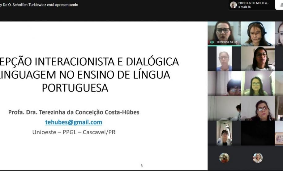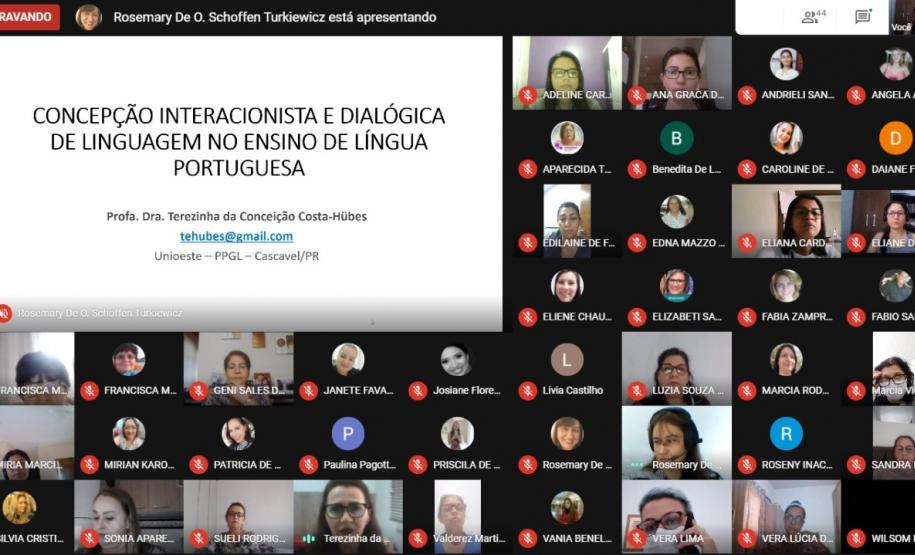 Na última quinta-feira, dia 29/10, o NRE de Goioerê teve a honra de contar com a participação de uma convidada especial, a Professora Dra. Terezinha da Conceição Costa Hübes, para uma tarde de Formação Remota Síncrona com os professores de Língua Portuguesa.