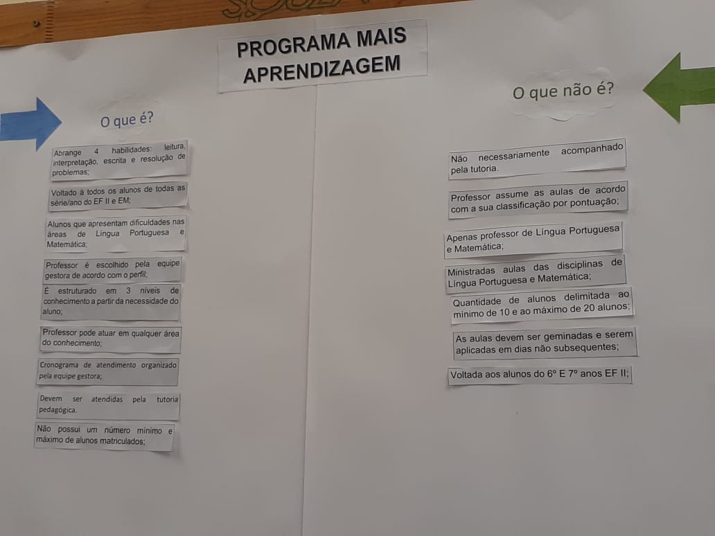 O encontro formativo teve como principal objetivo orientar sobre as diretrizes do Programa Mais Aprendizagem, o qual visa atender a todos os estudantes dos anos finais do Ensino Fundamental e do Ensino Médio, com necessidades de apoio em conteúdos relacionados à leitura, escrita, interpretação e resolução de problemas, para que consigam prosseguir sua trajetória escolar.