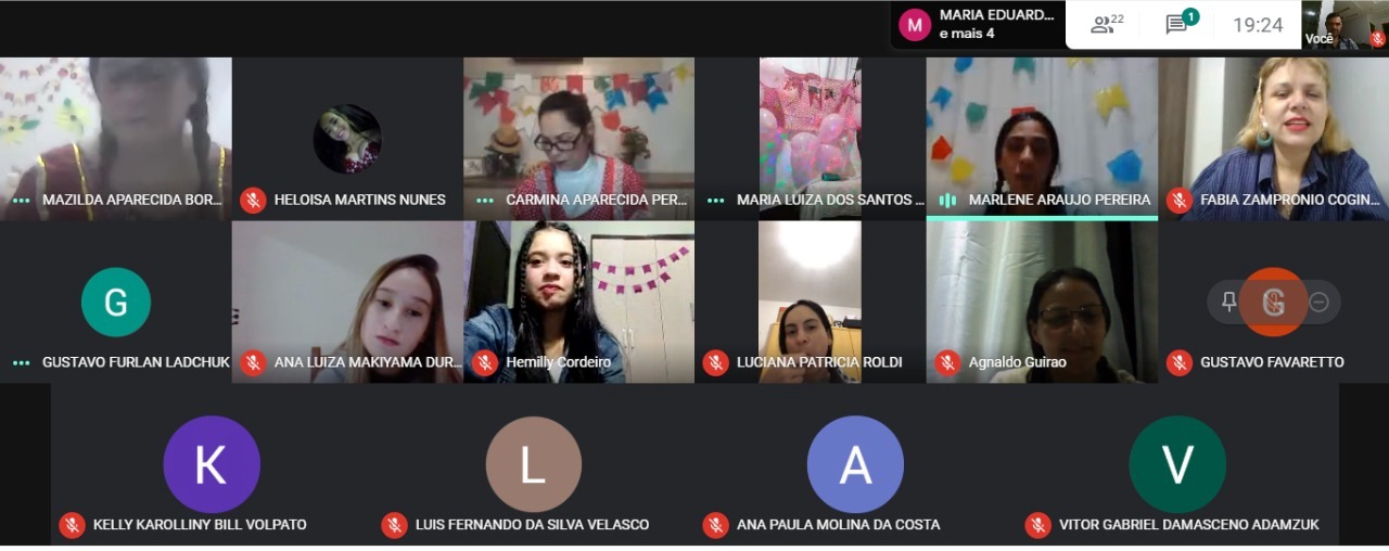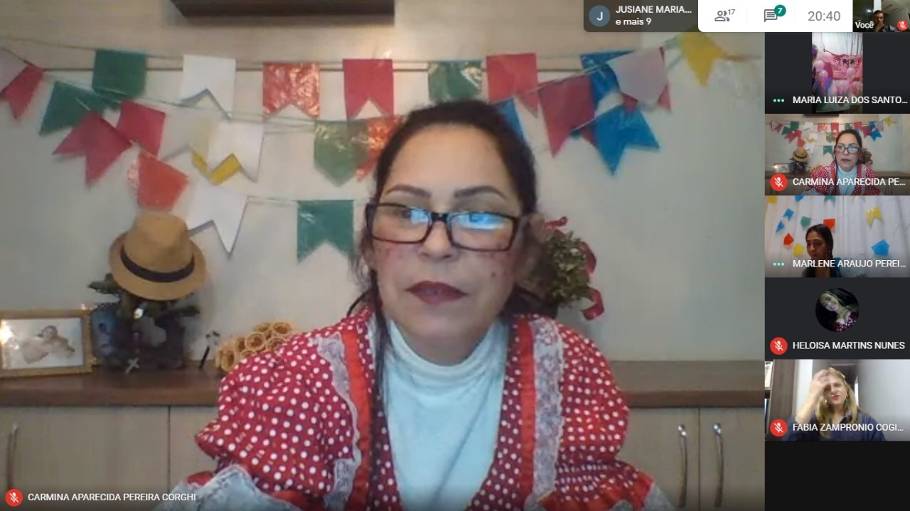 Na atividade os alunos e professores participaram de suas casas pelo Meet, trajados a caráter, fizeram pratos típicos e realizaram uma gincana educativa e recreativa.
