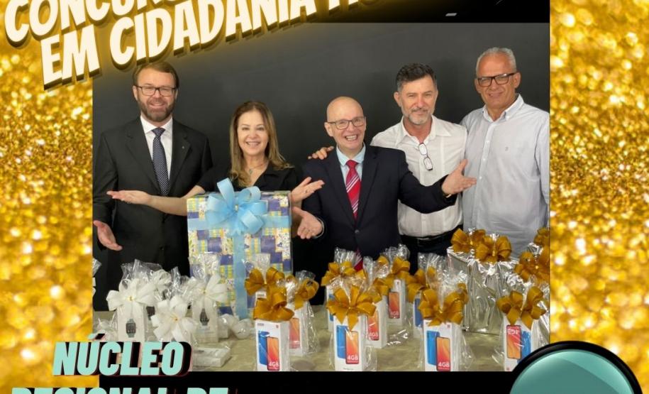 Ao final do evento, houve um sorteio de um Projetor Multimídia entre as escolas participantes do Concurso, presentes na solenidade, pela utilização da ferramenta Plataforma de Redação Paraná.