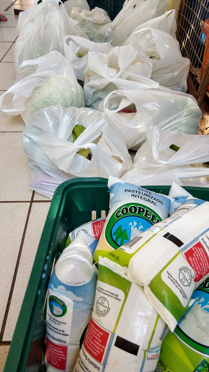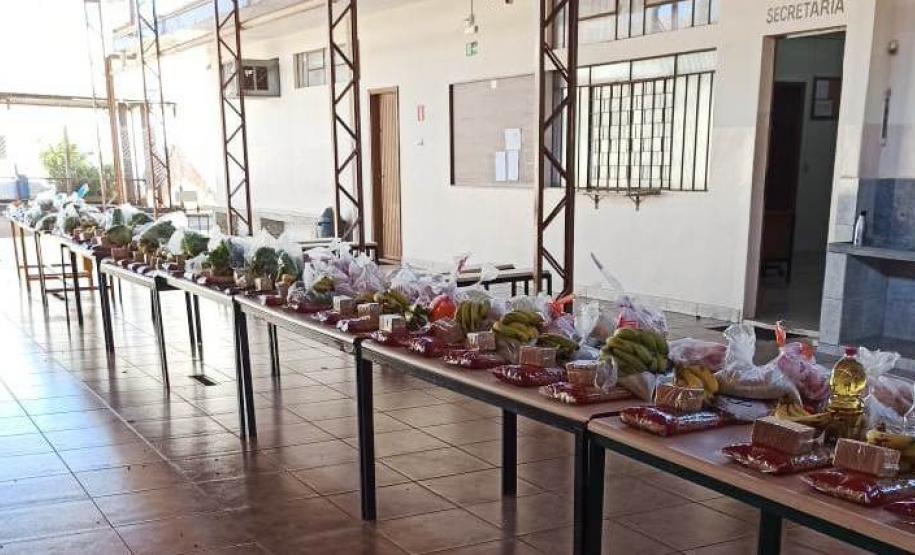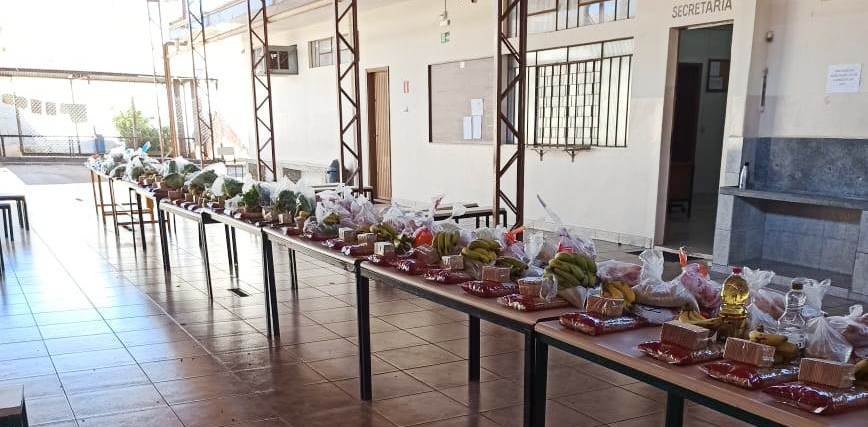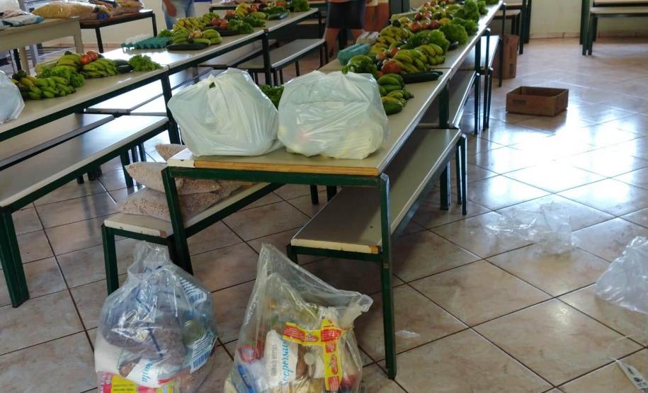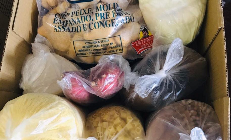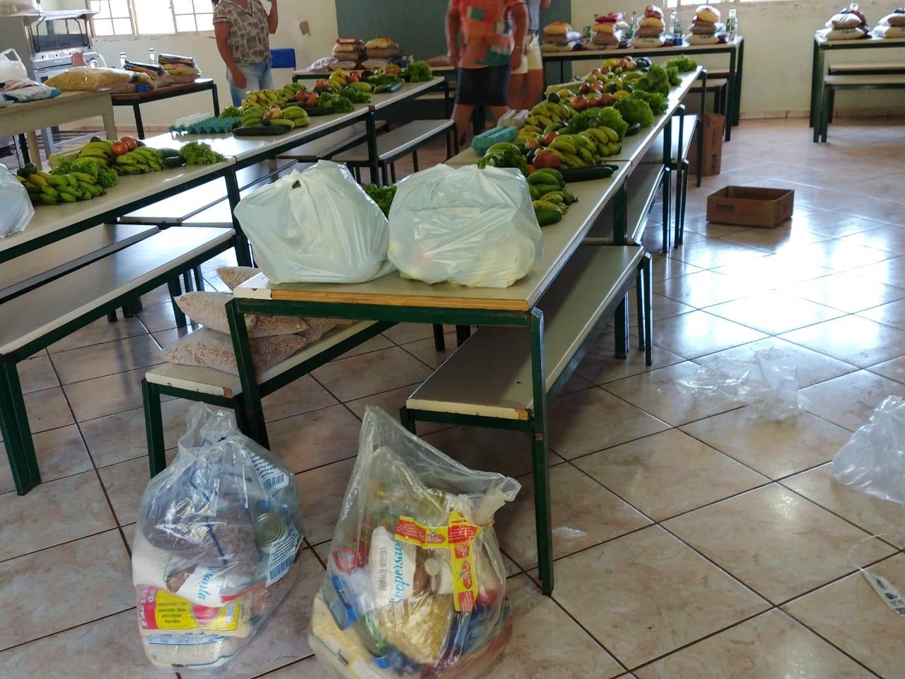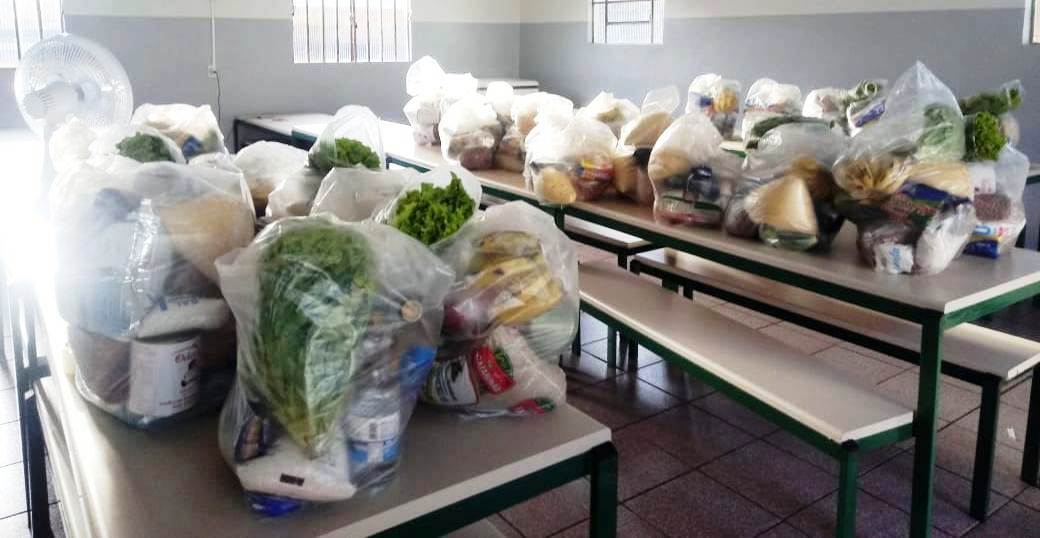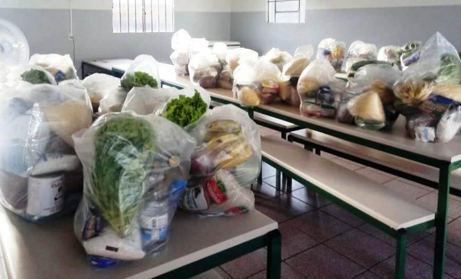O kit merenda foi composto dos produtos da agricultura familiar (frutas, hortaliças, legumes), ovos, congelados e os itens da merenda descentralizadas, arroz, feijão, macarrão, farinha, bolacha e outros, de acordo com o estoque de cada escola.