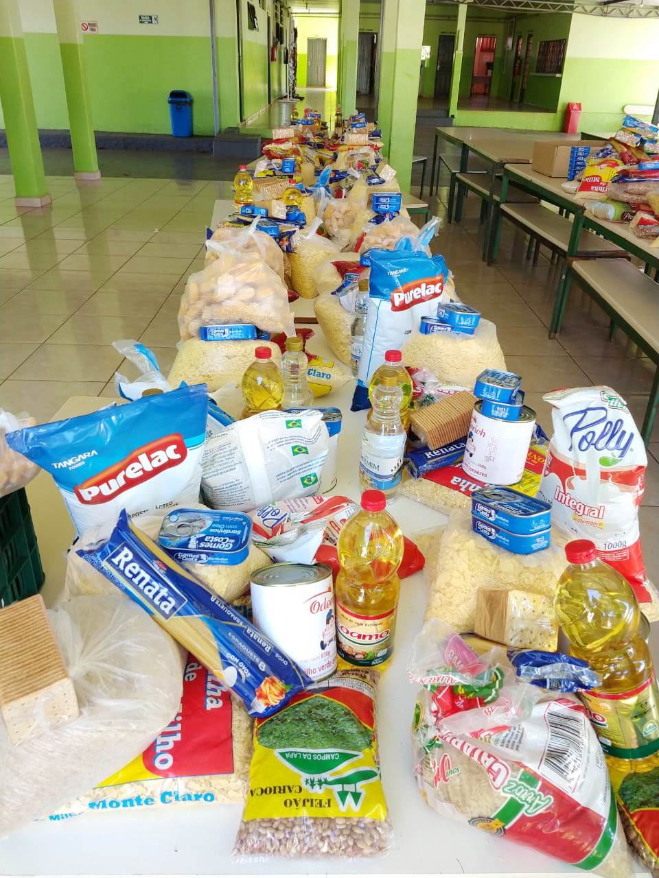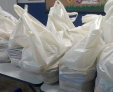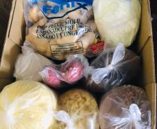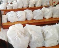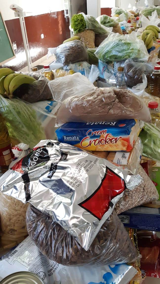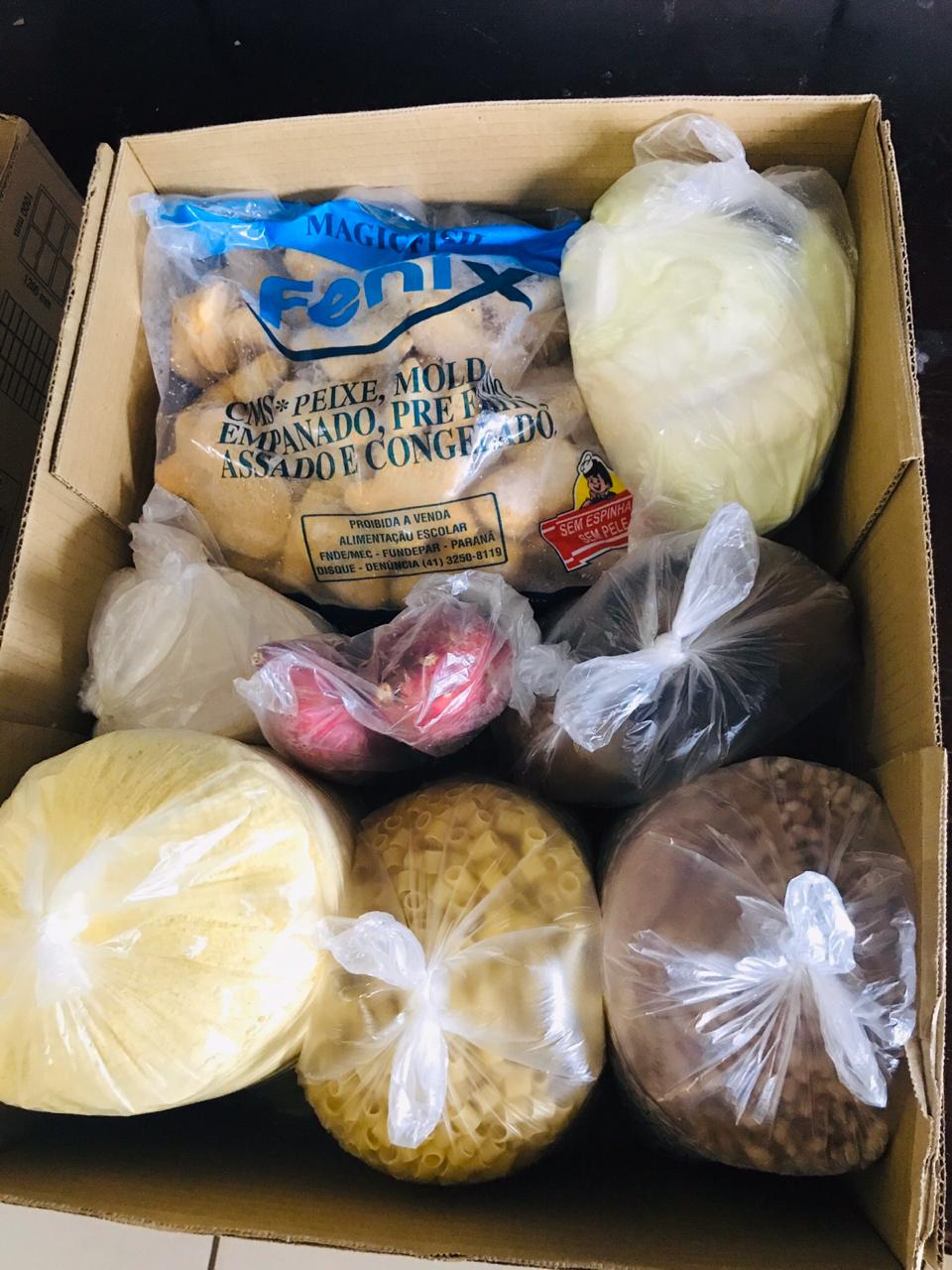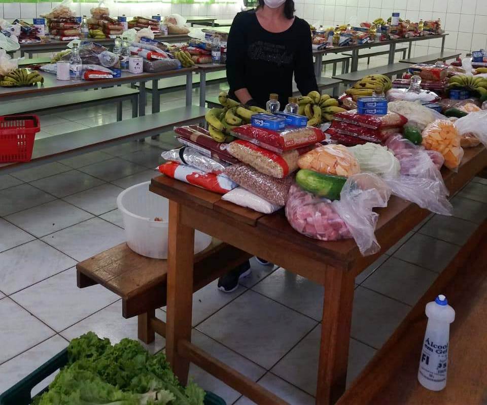 O kit merenda foi composto dos produtos da agricultura familiar (frutas, hortaliças, legumes), ovos, congelados e os itens da merenda descentralizadas, arroz, feijão, macarrão, farinha, bolacha e outros, de acordo com o estoque de cada escola.