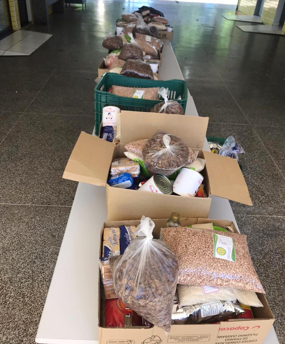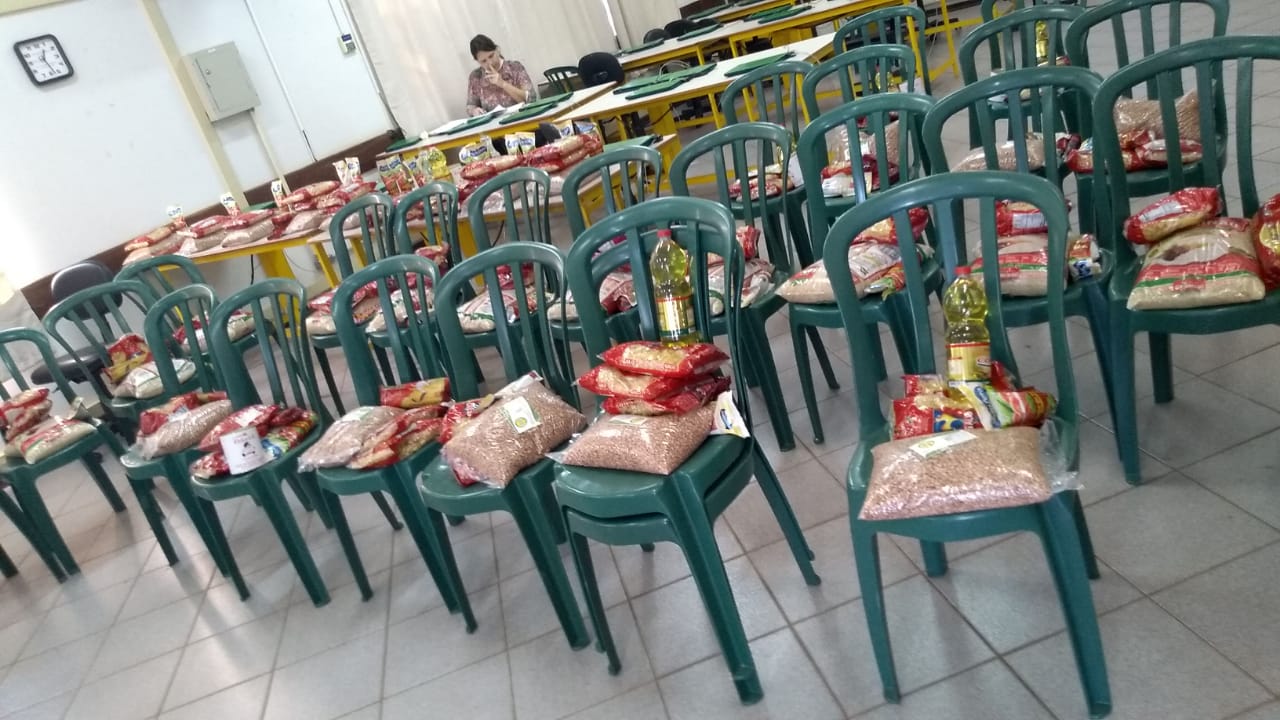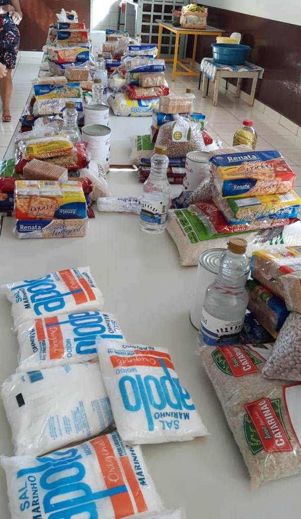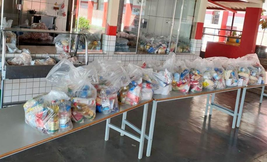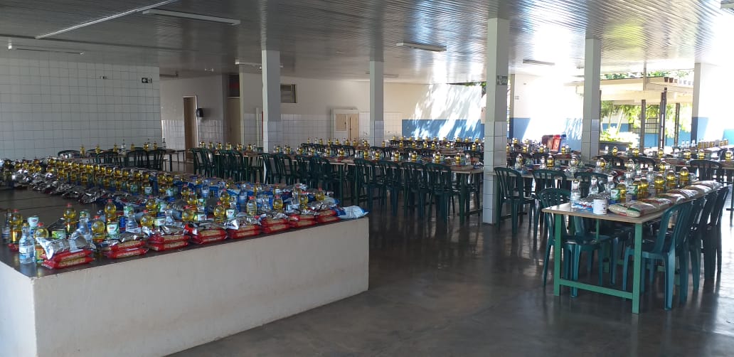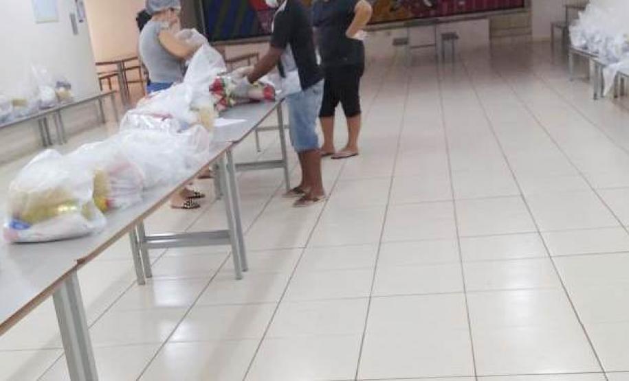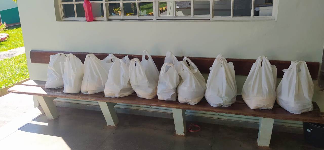 O kit merenda foi composto dos produtos da agricultura familiar (frutas, hortaliças, legumes), ovos, congelados e os itens da merenda descentralizadas, arroz, feijão, macarrão, farinha, bolacha e outros, de acordo com o estoque de cada escola.