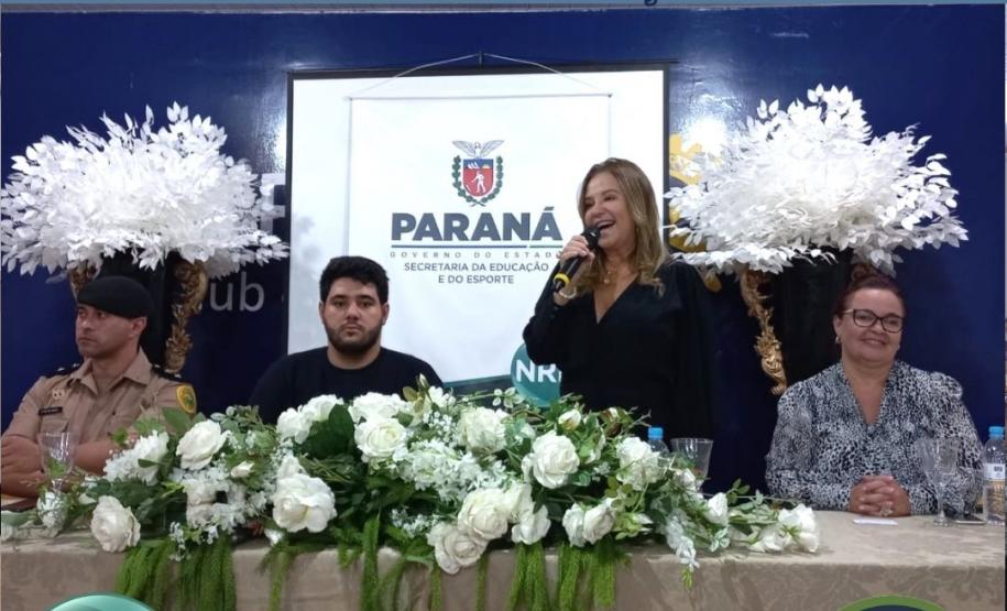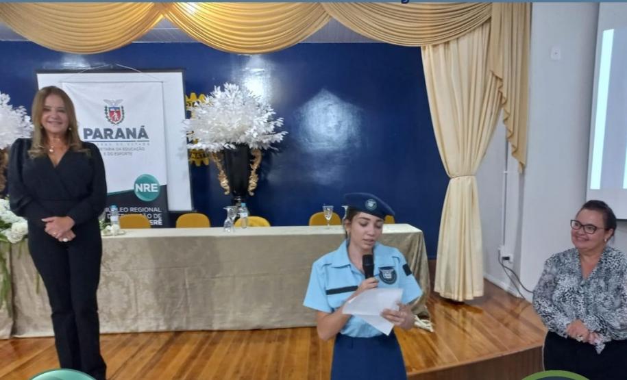 Em seu discurso, a chefe do NRE, enfatizou que “este modelo de ensino tem ampla aprovação dos pais, com uma matriz curricular que contempla seis aulas diárias, com mais aulas de Língua Portuguesa e Matemática e o acréscimo de Cidadania e Civismo visando formar o estudante de maneira integral”.