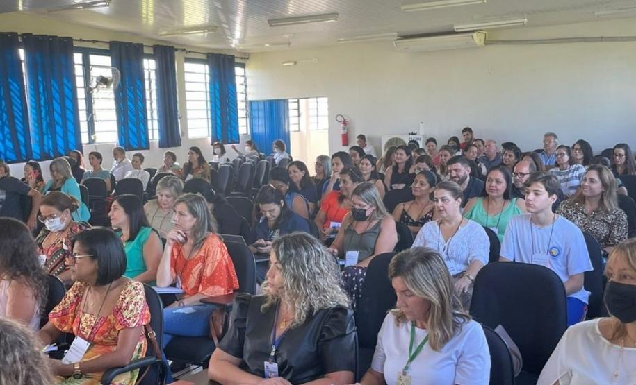 Nessa quinta-feira (28), o Núcleo Regional de Educação de Goioerê realizou a IV Conferência Nacional de Educação – Etapa Regional, com o tema ‘Inclusão, equidade e qualidade: compromisso com o futuro da educação brasileira”, nas dependências da Universidade Estadual de Maringá – UEM – Campus Goioerê. O evento contou com a presença de Diretores das Instituições de Ensino das redes pública e particular, Secretários Municipais de Educação e representantes da Secretaria Municipal de Educação, professores, representantes das Instituições de Ensino Superior, alunos e demais segmentos e setores sociais.