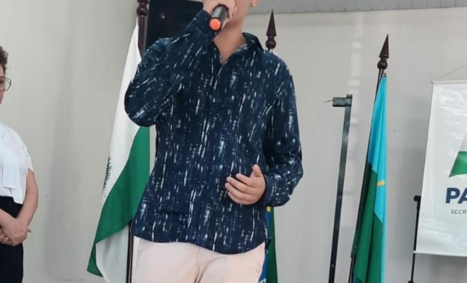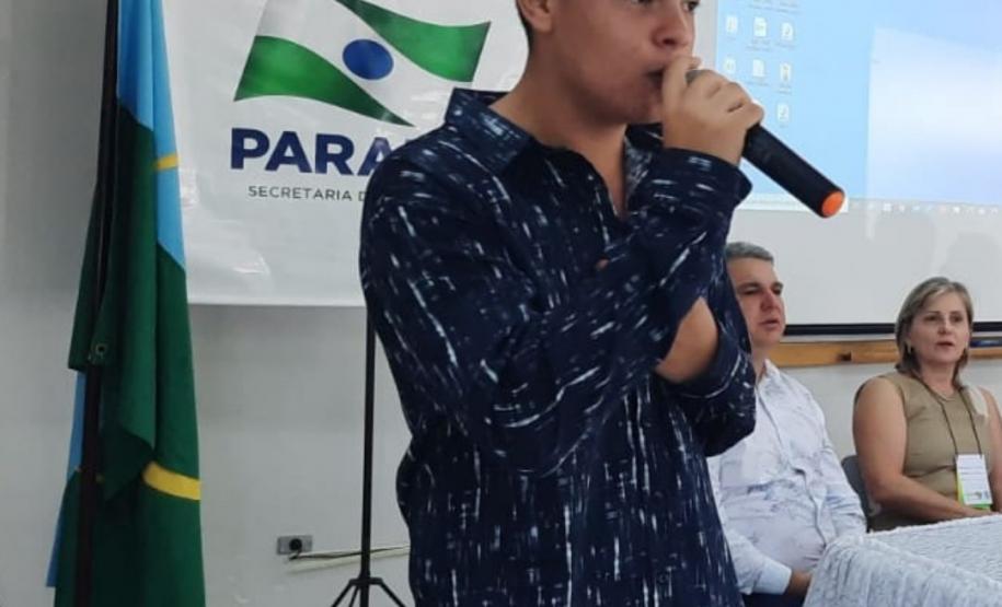 Abrilhantando ainda mais a CONAE, o ex-aluno da Escola Estadual Dom Bosco, e, atual aluno do Colégio Estadual José Alfredo de Almeida, Joaquim Felix, fez uma apresentação musical, e, após, o aluno Luan Gabriel do Colégio Estadual Cívico-Militar Vila Guaíra entoou o Hino Nacional brasileiro. Em seguida, a Chefe do Núcleo Regional de Educação de Goioerê, Tania Faria Henrique, a Secretária Municipal de Educação de Goioerê, Anirléia de Oliveira explanaram acerca da importância da realização da Conferência enquanto momento de discussão e viabilização de políticas públicas para o processo educacional.
