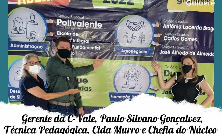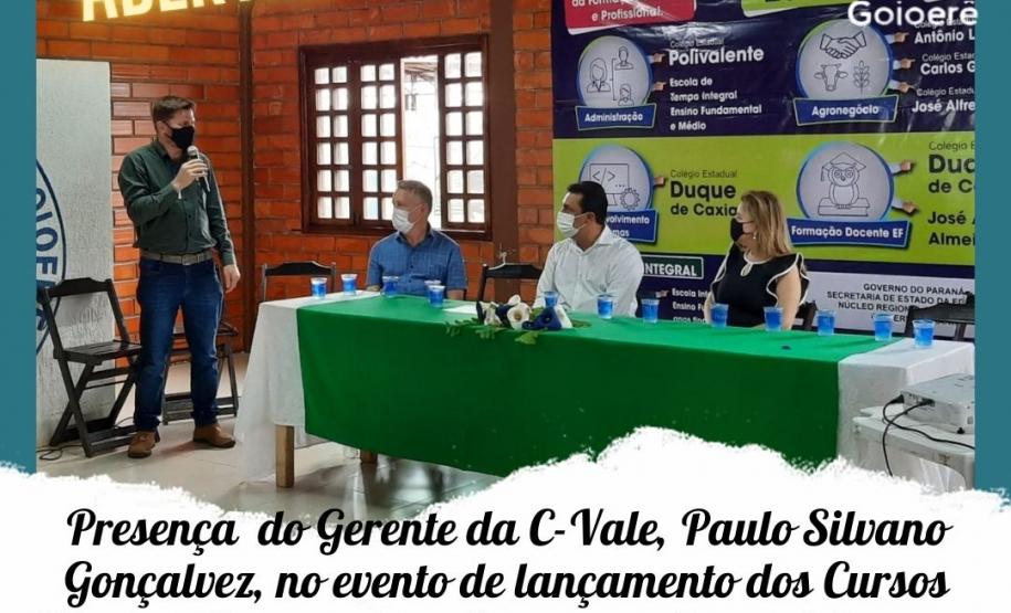 O evento contou com a presença da Chefia do Núcleo Regional de Educação de Goioerê, ProfessoraTania Faria Henrique, do Prefeito Municipal de Goioerê, Roberto dos Reis de Lima, do Gerente da C-Vale, Paulo Silvano Gonçalvez, do Presidente da Associação Comercial de Goioerê, José Alexandre Cândido, do Prefeito de Janiópolis, Ismael José Dezanoski, do Presidente do Sindicato Rural, Sergio Fortis, do Diretor do Colégio Estadual Polivalente de Goioerê, Professor Ricardo Stefeneti e Diretor Auxiliar, Professor Ademir Santana, Diretora do Colégio Estadual Antônio Lacerda Braga, Professora Elizabete Murante, do Diretor do Colégio Estadual José Alfredo de Almeida, Professor Williams David Pineli, da Diretora do Colégio Estadual Rancho Alegre, Professora Eliane dos Santos Macedo.