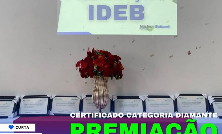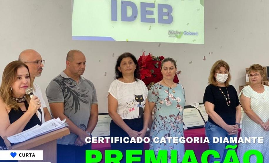 Nesta quinta-feira, 08/12/22, foi realizada no auditório do Núcleo Regional de Educação de Goioerê, a cerimônia de "Premiação do IDEB" - Índice de Desenvolvimento da Educação Básica - categoria Diamante, contando com a presença de Diretores e Coordenadores das Escolas/Colégios da rede estadual de ensino, a Chefia do NRE, Professora Tania Faria Henrique e demais Técnicos Pedagógicos da Equipe de Ensino que atuam diretamente com o processo educacional.