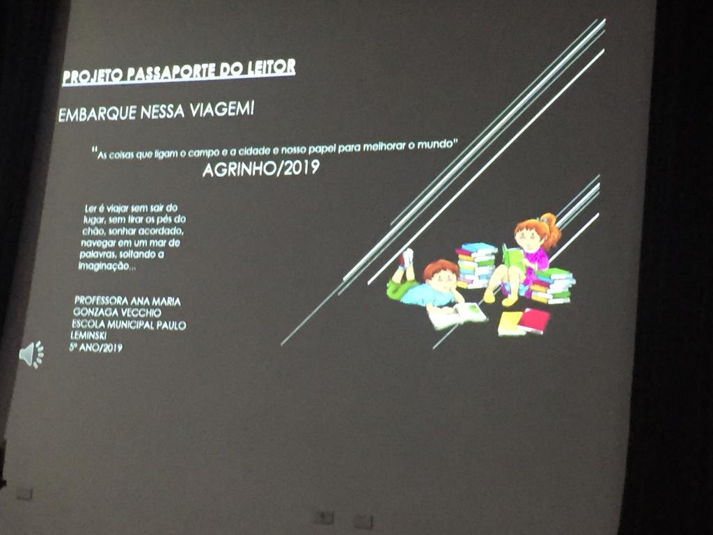 No último dia 04/07/2019, foi celebrada a festa do conhecimento do Projeto Passaporte do Leitor - Embarque Nessa Viagem! Em parceria com o Programa Agrinho/2019. As coisas que ligam o campo e a cidade e nosso papel para melhorar o mundo", de autoria da professora Ana Maria Gonzaga Vecchio professora do 5º ano da Escola Municipal Paulo Leminski, realizado Casa da Cultura da cidade de Juranda/Paraná.