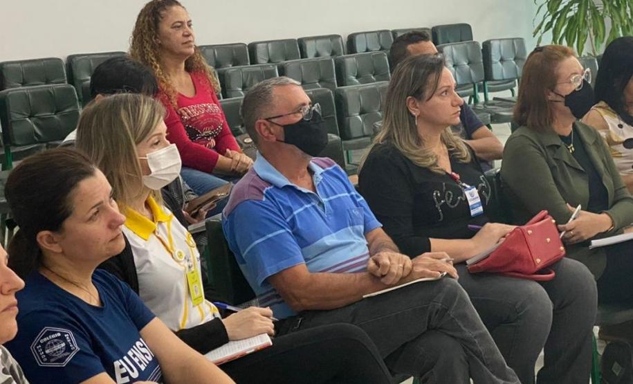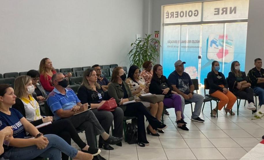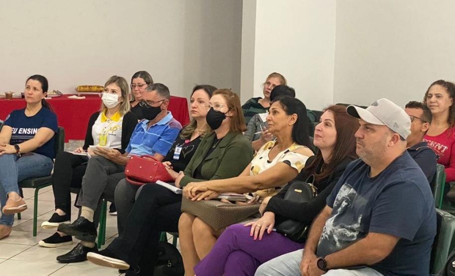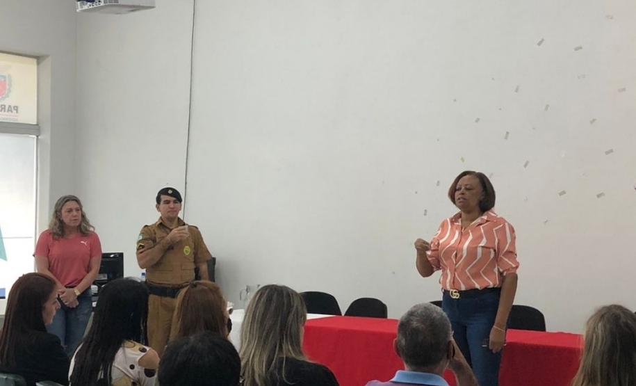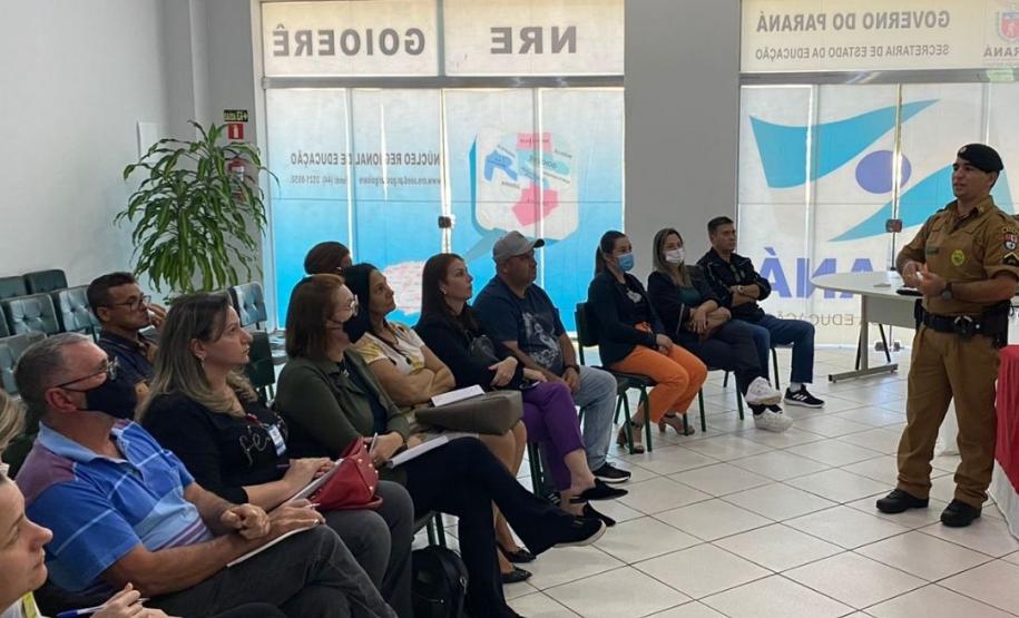Nessa sexta-feira (13), a Assistente de Chefia do Núcleo Regional de Educação de Goioerê, Osmarina Rocha Brandão, juntamente com a Técnica pedagógica responsável pelo Presente na Escola e SERP, Jucilene Santana Peruci, receberam os Diretores dos colégios da rede estadual e particular, para uma palestra ministrada pelo Cleberson Pereira da Silva - Representante da PM/Patrulha Escolar e PROERD, no anfiteatro do NRE de Goioerê. O objetivo da palestra era falar sobre assuntos como ato infracional, indisciplina, drogas, preconceito e procedimentos.