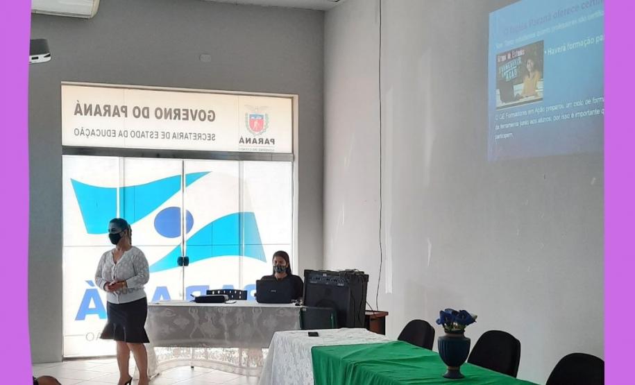 Essa quinta-feira (02/09/21), no período da manhã, a Técnica Pedagógica do CELEM do Núcleo Regional de Educação, Professora Maurene Della Riva, realizou uma reunião com os professores de Língua Inglesa que atuam nos Anos Finais do Ensino Fundamental e Médio da rede estadual de ensino, para tratar do uso prático da Plataforma “Inglês Paraná”, ambiente 100% online que visa contribuir para a formação dos nossos estudantes.
