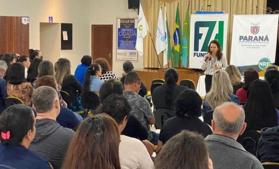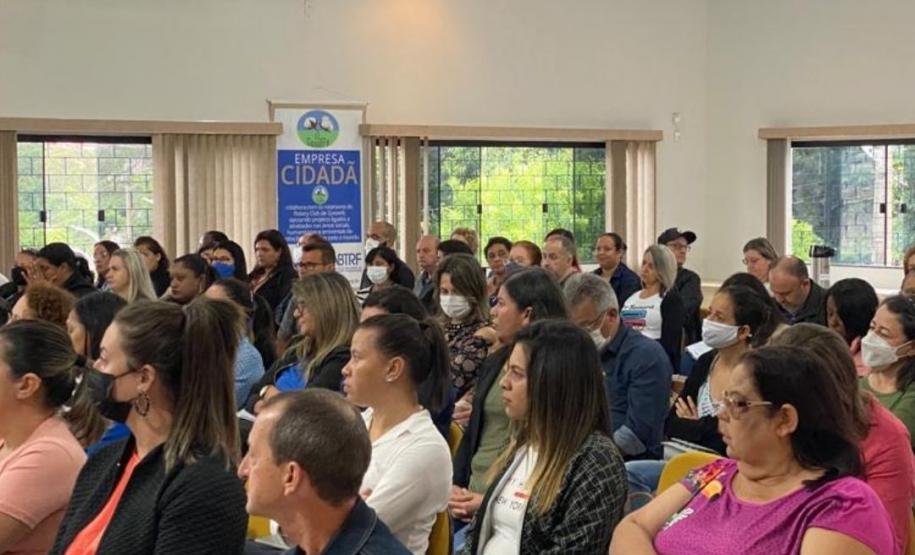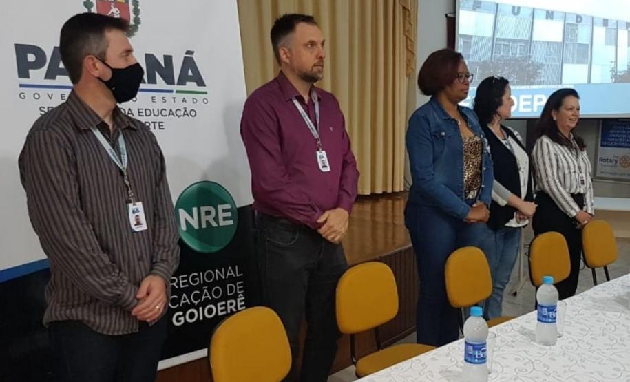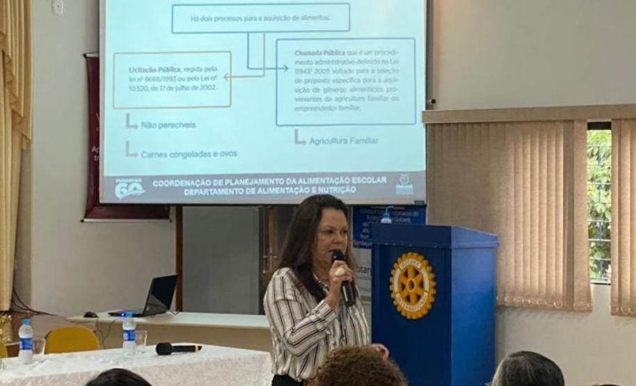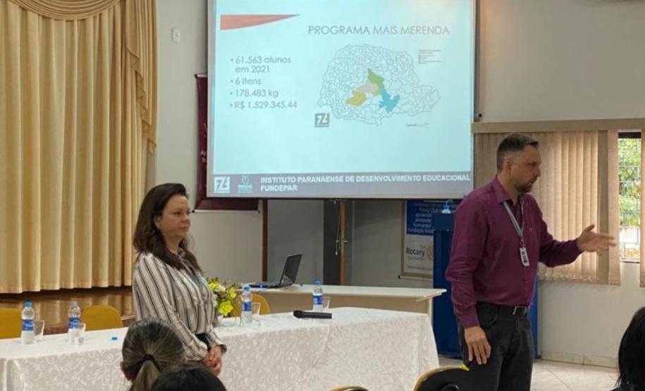 Na manhã dessa terça-feira (10), o Núcleo Regional de Educação de Goioerê, sob orientação da Chefia Tania Faria Henrique, realizou uma reunião técnica no Rotary Club de Goioerê, sobre o Programa de Alimentação Escolar, no qual os participantes receberam instruções e orientações sobre o Sistema Merenda e o Programa de Alimentação Escolar. O evento contou com a presença da Assistente de Chefia, Osmarina Rocha Brandão, representantes do FUNDEPAR, Andrea Regina Burakoski da Cunha – Coordenadora de Logística e Monitoramento da Alimentação Escolar – CLMA, Angelo Marco Mortella – Gerente do Departamento de Nutrição e Alimentação Escolar – COFAE e Rosangela Mara Slonski – Nutriconista da Coordenação de Planejamento da Alimentação Escolar. Além dos representantes, estiveram presentes todos os Diretores (as), responsáveis pelo Sistema Merenda e Merendeiras.