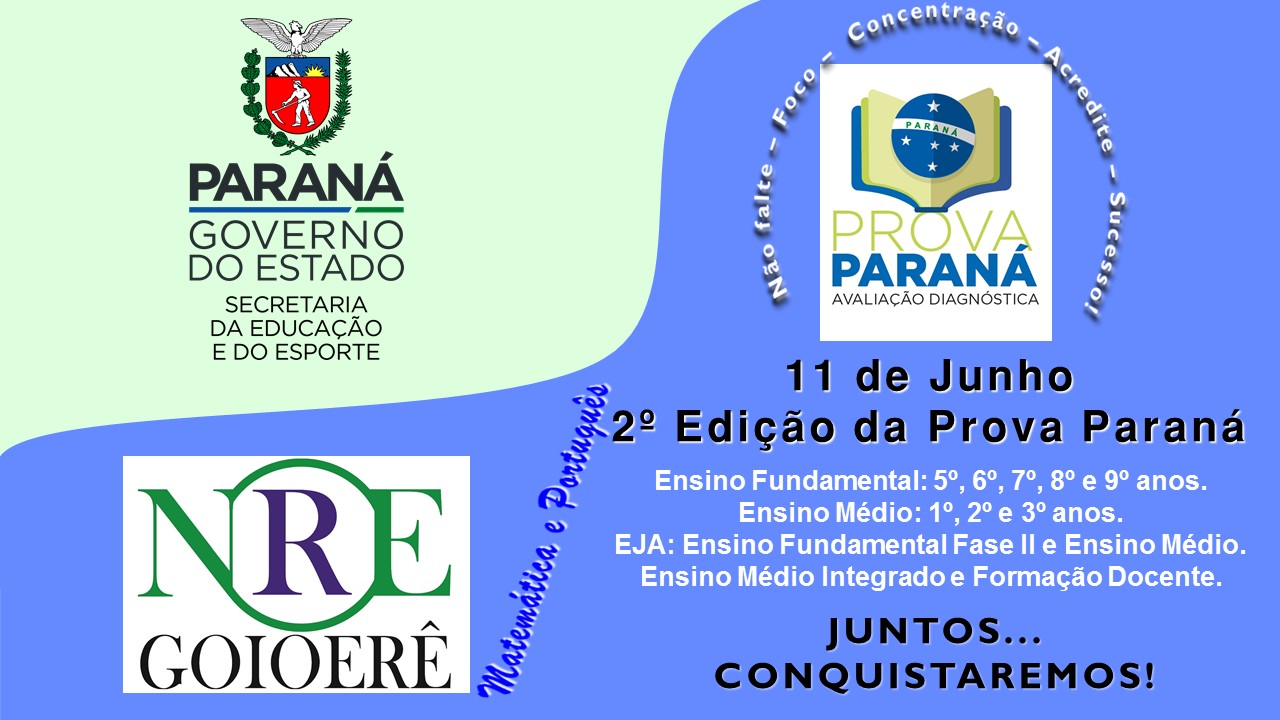 O Núcleo Regional de Educação de Goioerê vem desenvolvendo um intenso trabalho de mobilização e apoio à participação de todos os alunos da rede pública de ensino na 2ª Edição da Prova Paraná, agendada para o próximo dia 11 de junho de 2019.